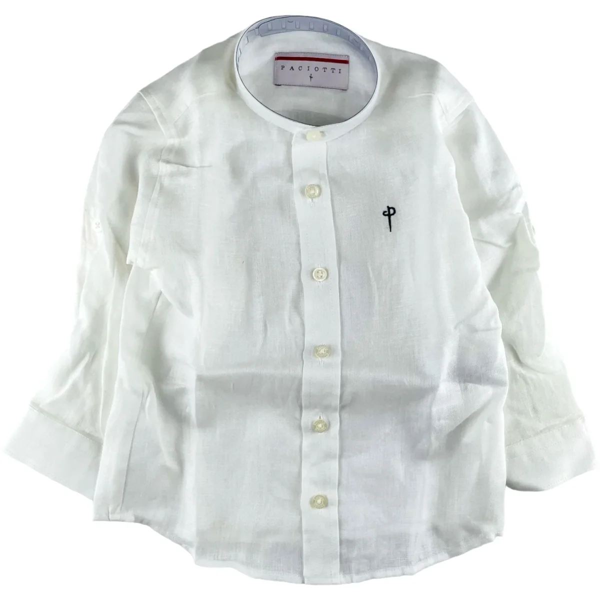 Camicia CESARE PACIOTTI in lino manica lunga, con la possibilità di renderla mezza manica loghi a contrasto.