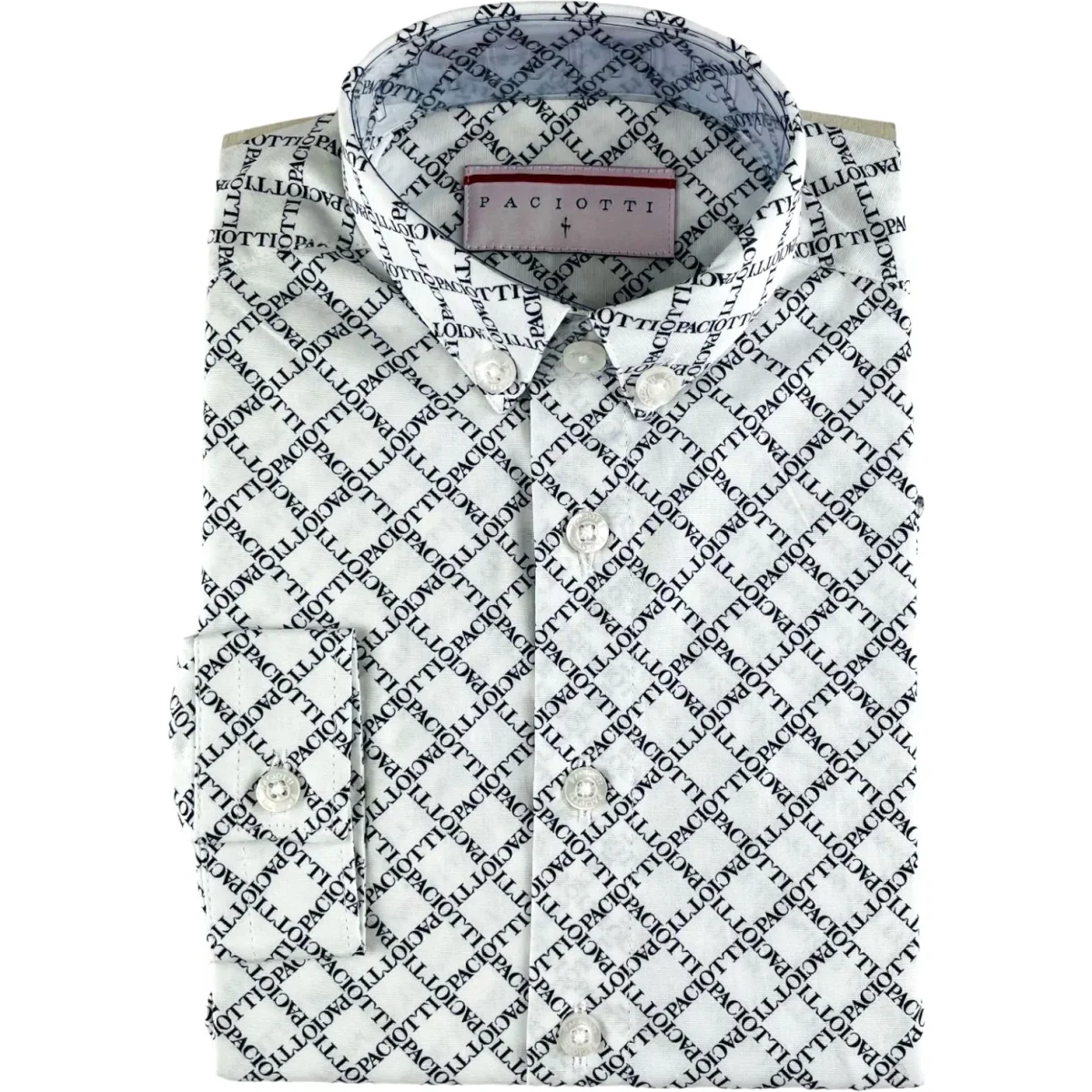 Camicia CESARE PACIOTTI in cotone manica lunga, loghi a contrasto in colore nero.
