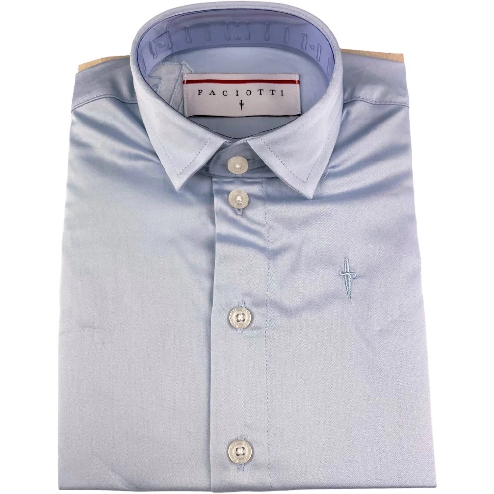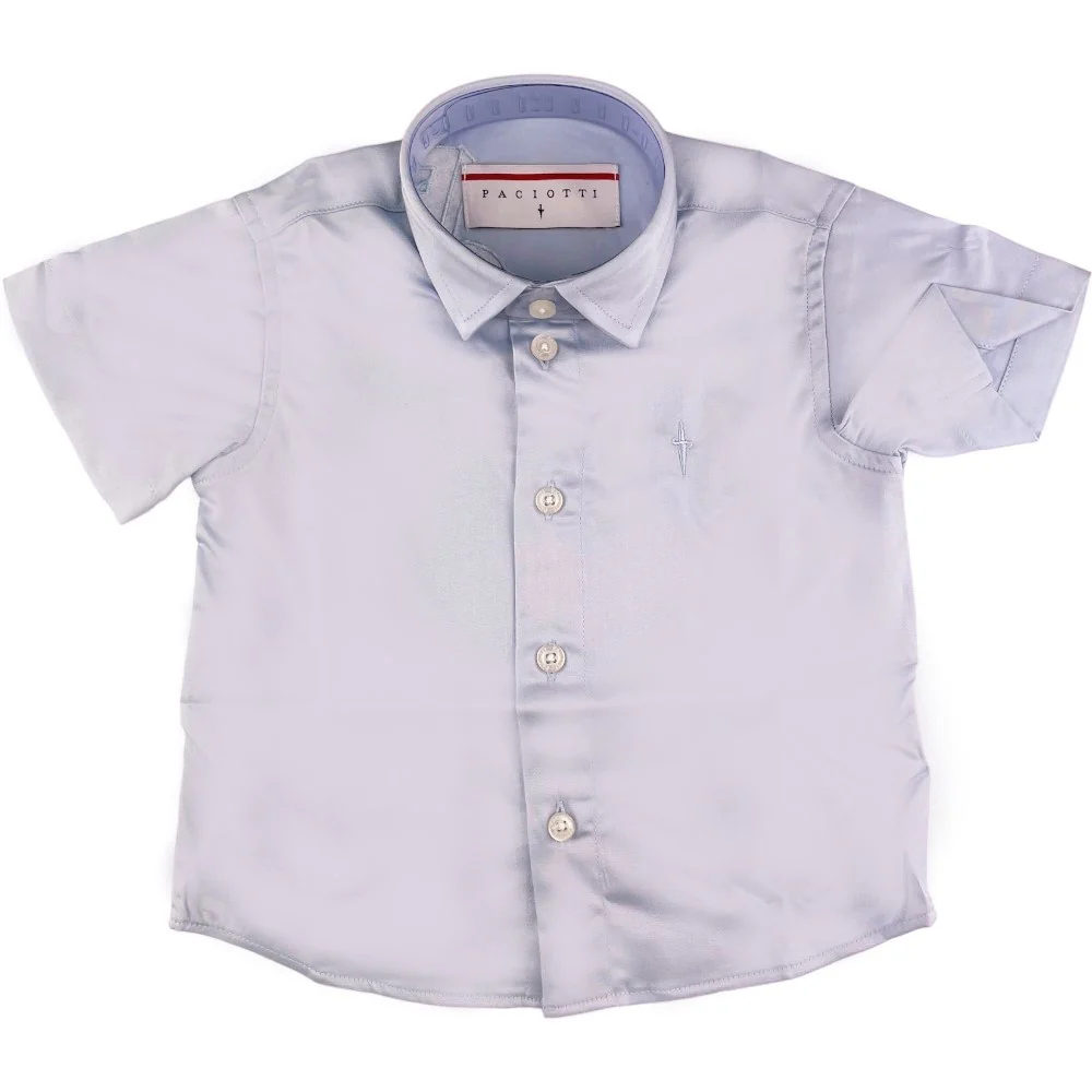 Camicia CESARE PACIOTTI modello mezza manica con ricamo sul retro a contrasto. chiusura con bottoni logati.