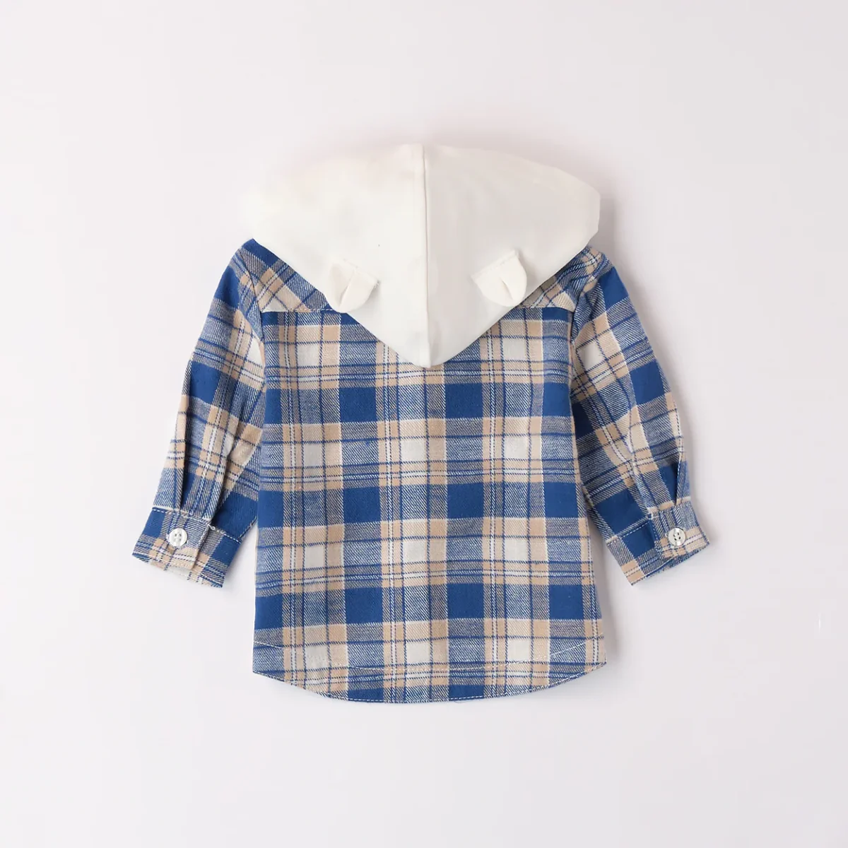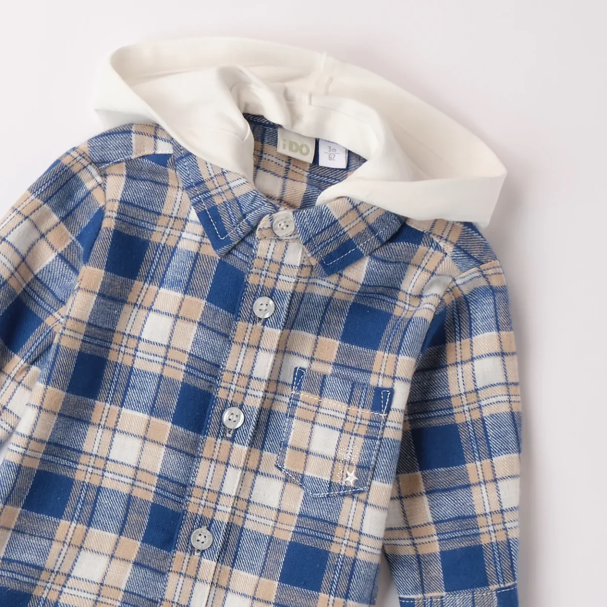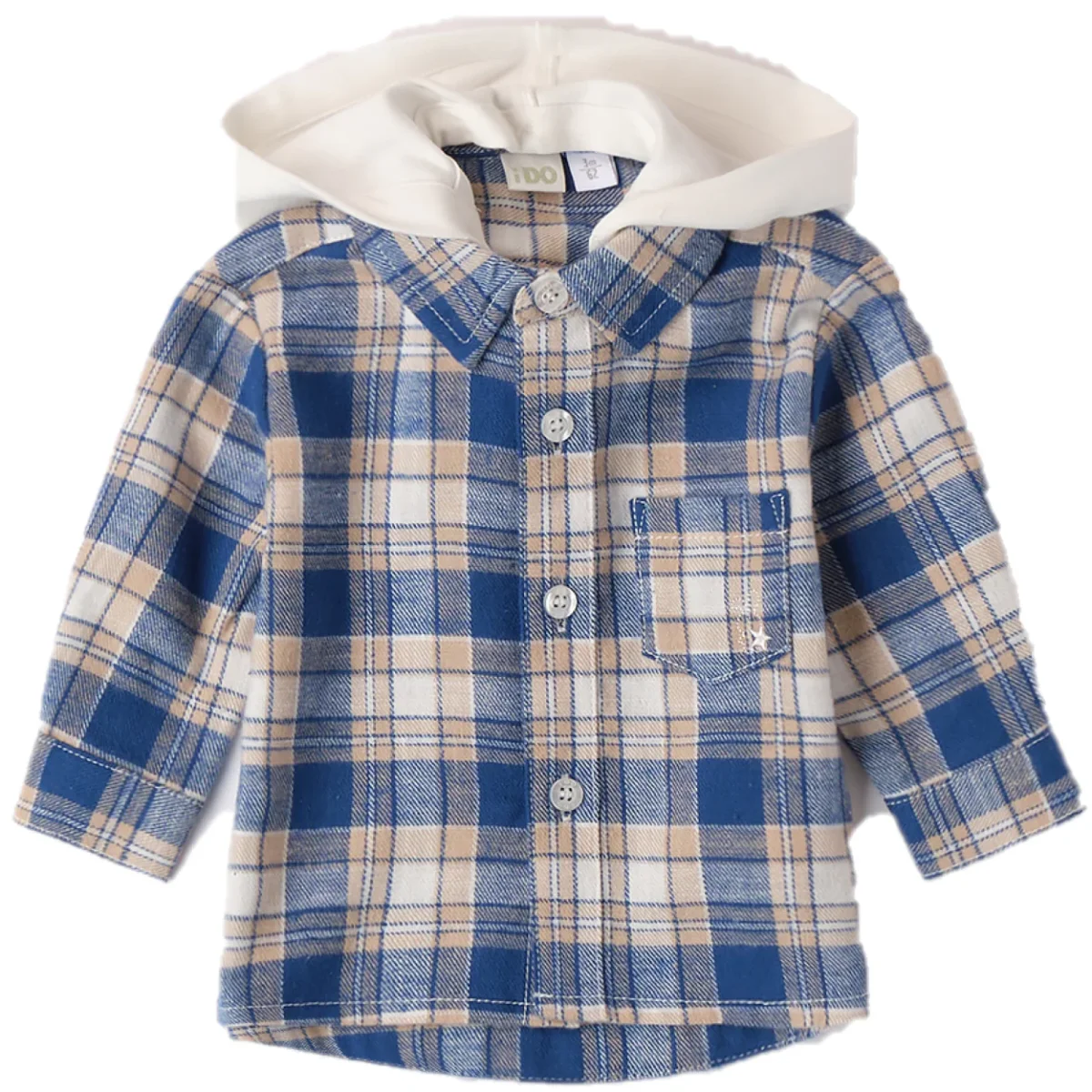 Camicia i DO in flanella con cappuccio applicato. chiusura con bottoni.