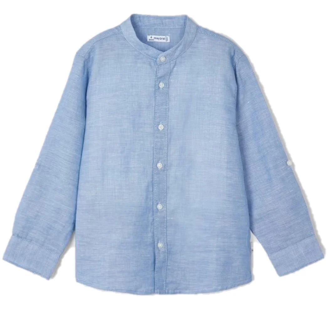 Camicia MAYORAL in misto lino con colletto alla coreana , chiusura con bottoncini .