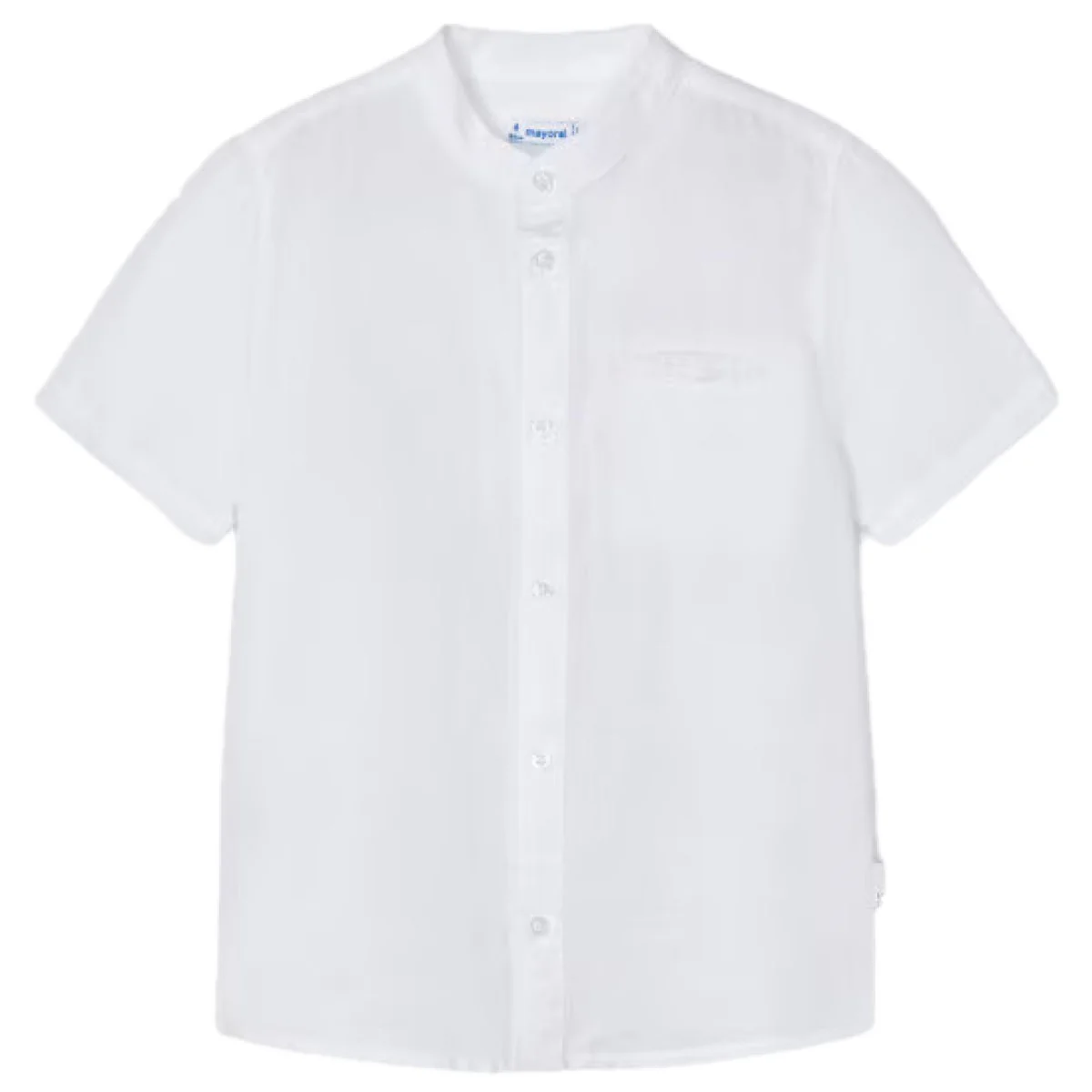 Camicia MAYORAL in misto lino con colletto alla coreana, taschino laterale, chiusura con bottoncini logati.