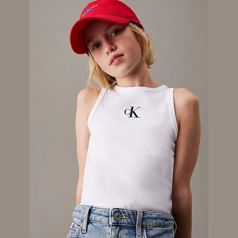 Canotta CALVIN KLEIN in cotone elastico , vestibilita slim , logo monogramma Calvin Klein sul petto.