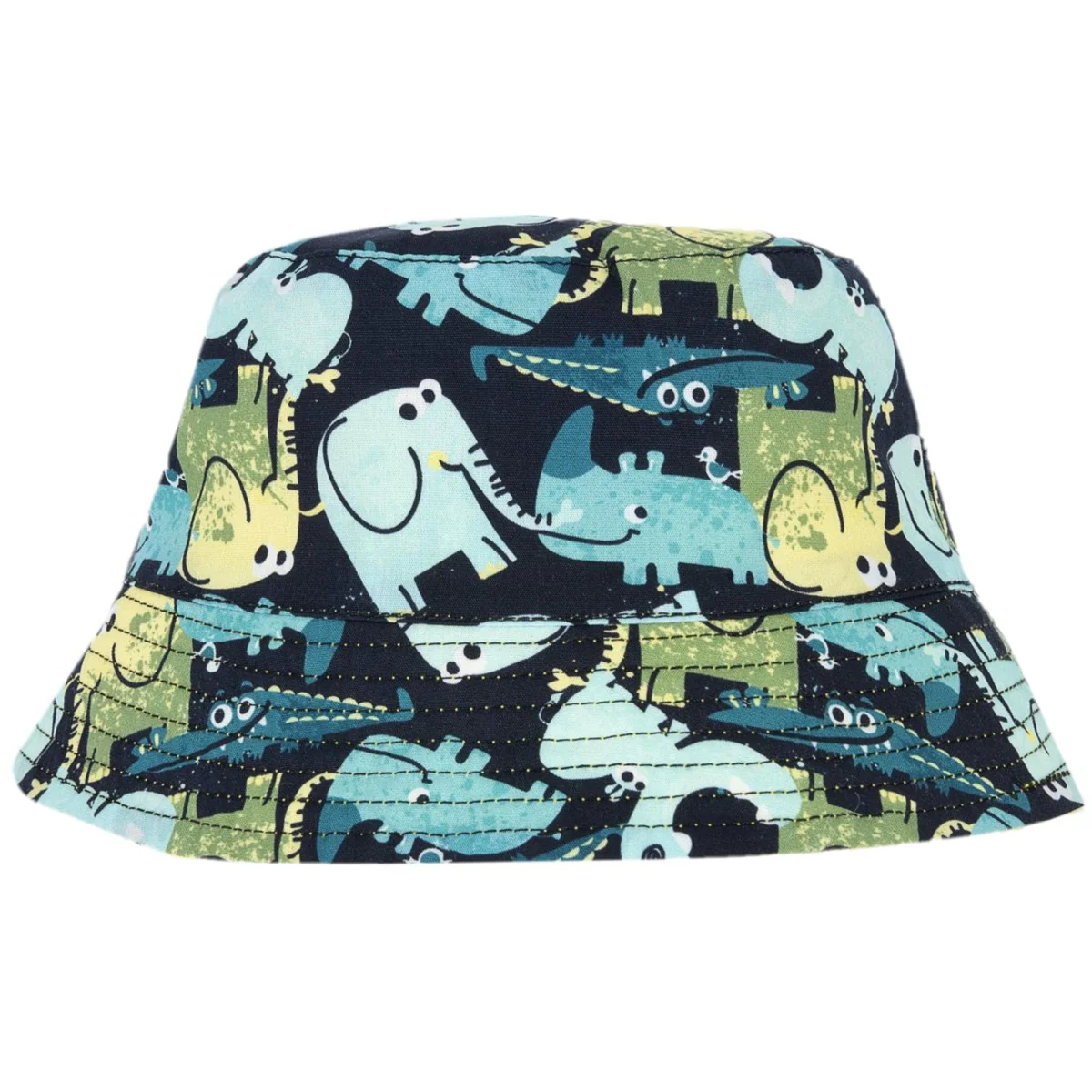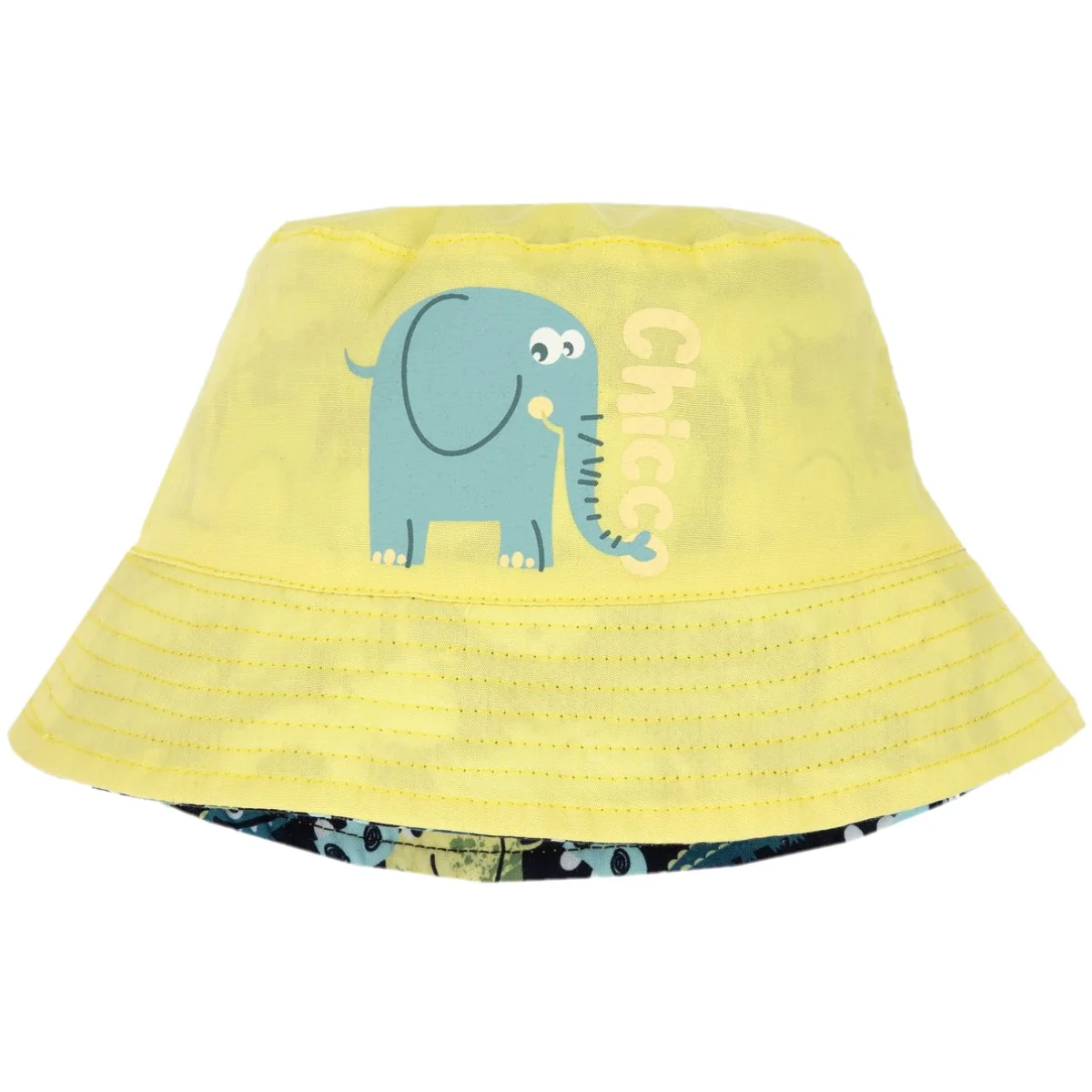 Cappello CHICCO in cotone modello alla pescatora reversibile, da un lato a fantasia in colori a contrasto, e dall’altro con stampa e logo stampato applicato.