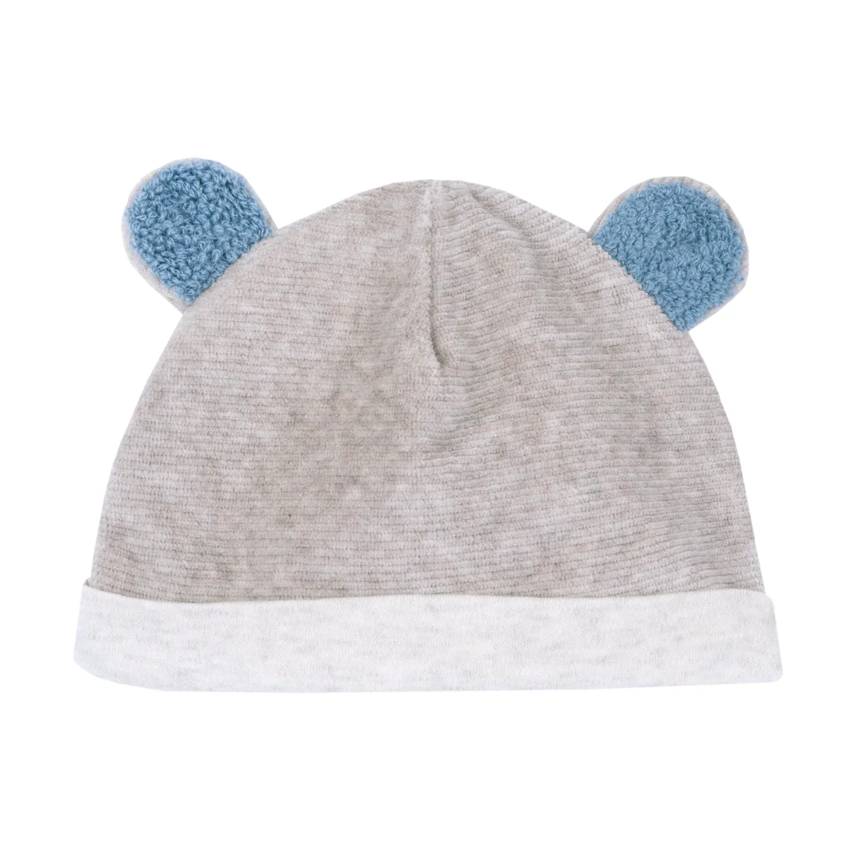 Cappello CHICCO in morbida ciniglia con fodera interna in cotone, orecchie applicate in tessuto e colore a contrasto.