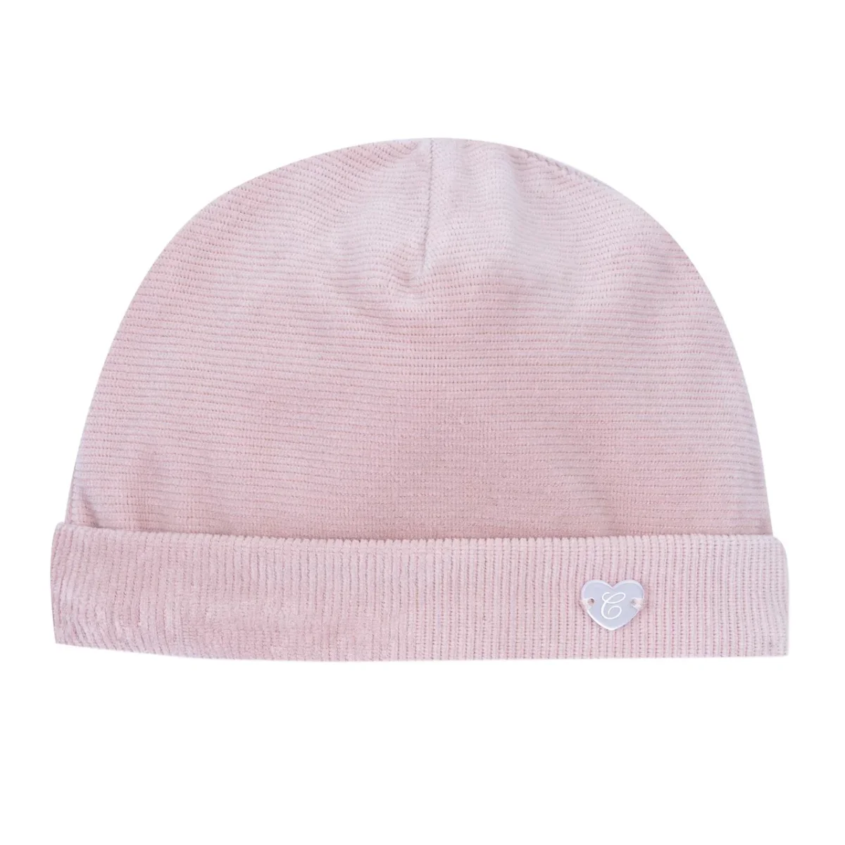 Cappello CHICCO in ciniglia rosa a coste con logo in madreperla.