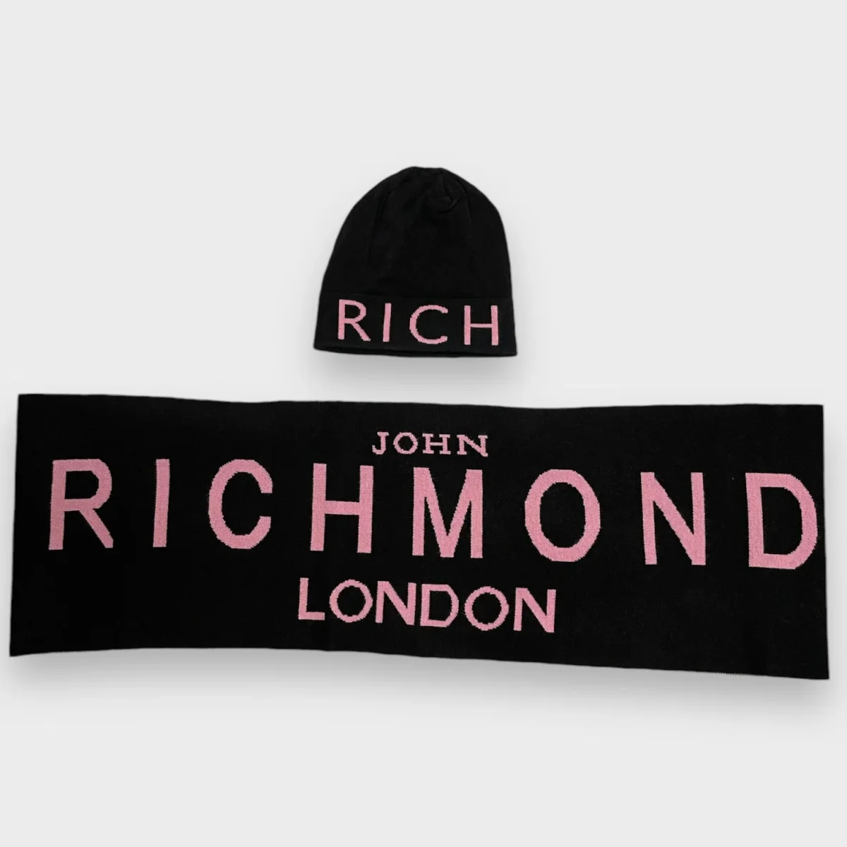 Cappello e Sciarpa JOHN RICHMOND con logo a contrasto nella trama.