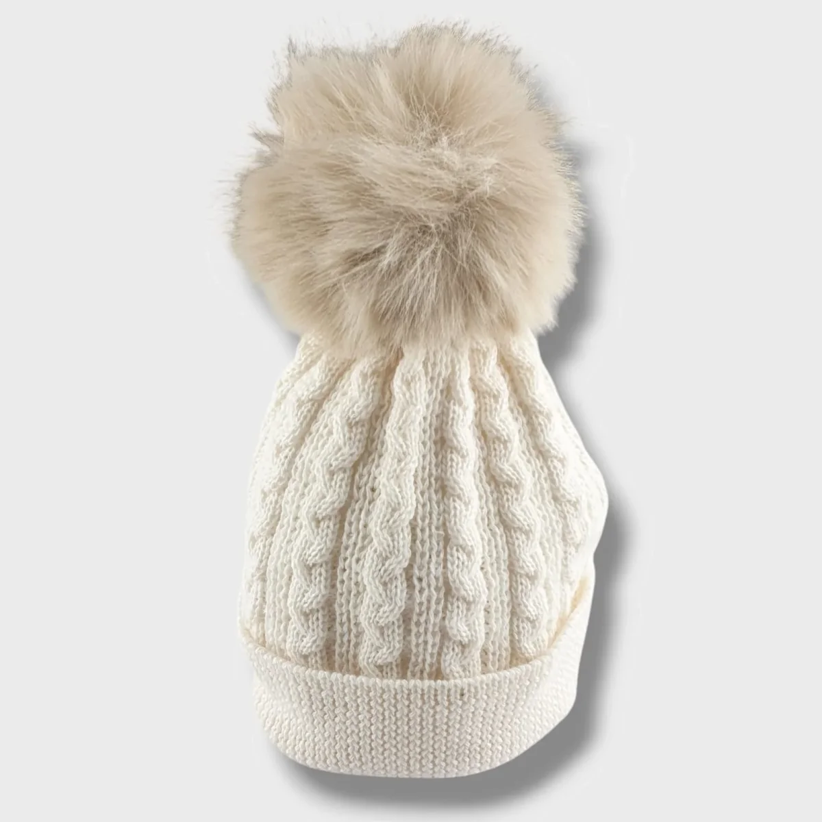 Cappello LOVE PARIS in misto lana merinos lavorata con pom pon in ecopelliccia. MADE IN ITALY.