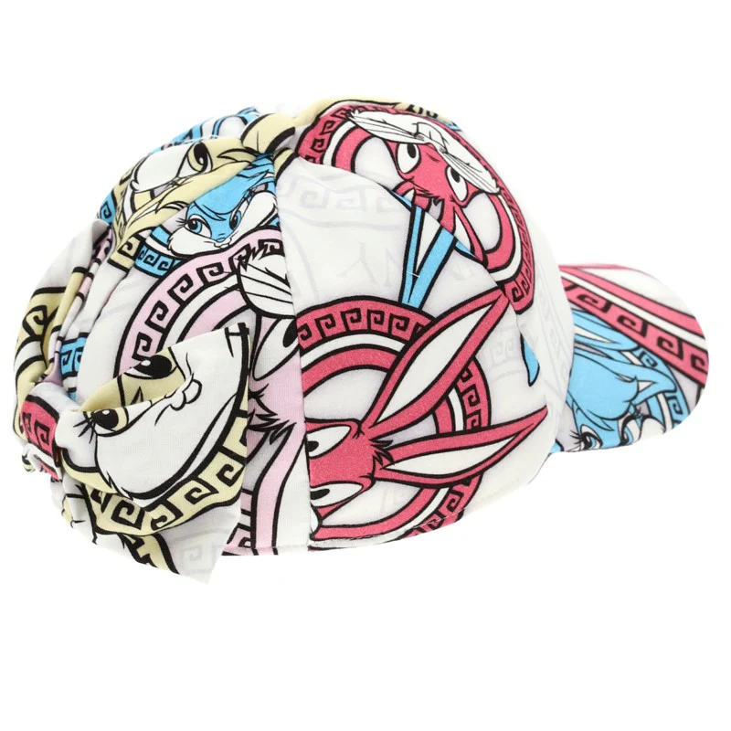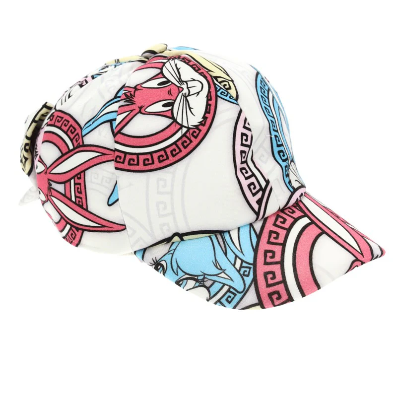 Cappello MONNALISA in tessuto a fantasia stampata tema BUGS & LOLA inserto elastico sul retro e finto fiocco applicatofoderato in cotone. Ogni capo è unico poichè la stampa della fantasia risulta essere casuale.MADE IN ITALY