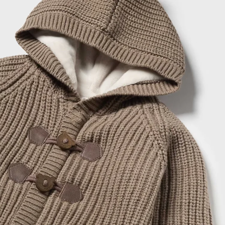 Felpa Cappottino MAYORAL con cappuccio, chiusura con zip intera e bottoni, interno in ecopelliccia.