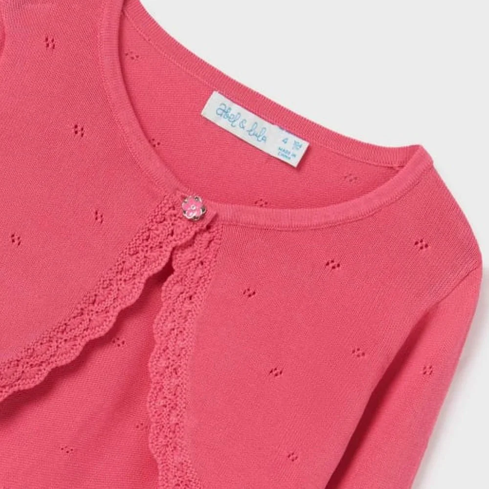 Cardigan ABEL&ampLULA fuxia con lavorazione ai bordi chiusura con bottone gioiello.