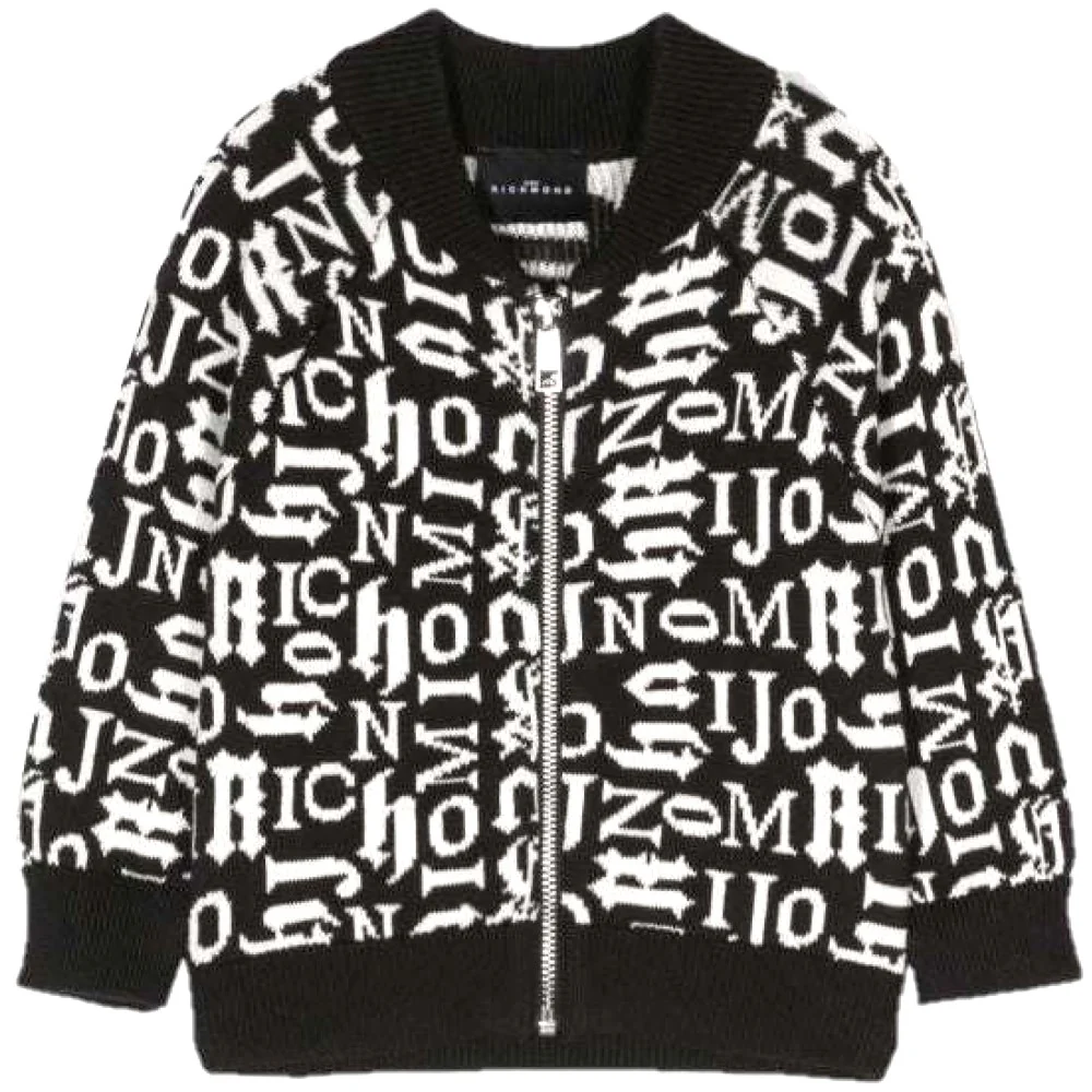Cardigan JOKN RICHMOND misto cotone con collo e chiusura zip fantasia logata allover orlo e polsini a elastici a costine.