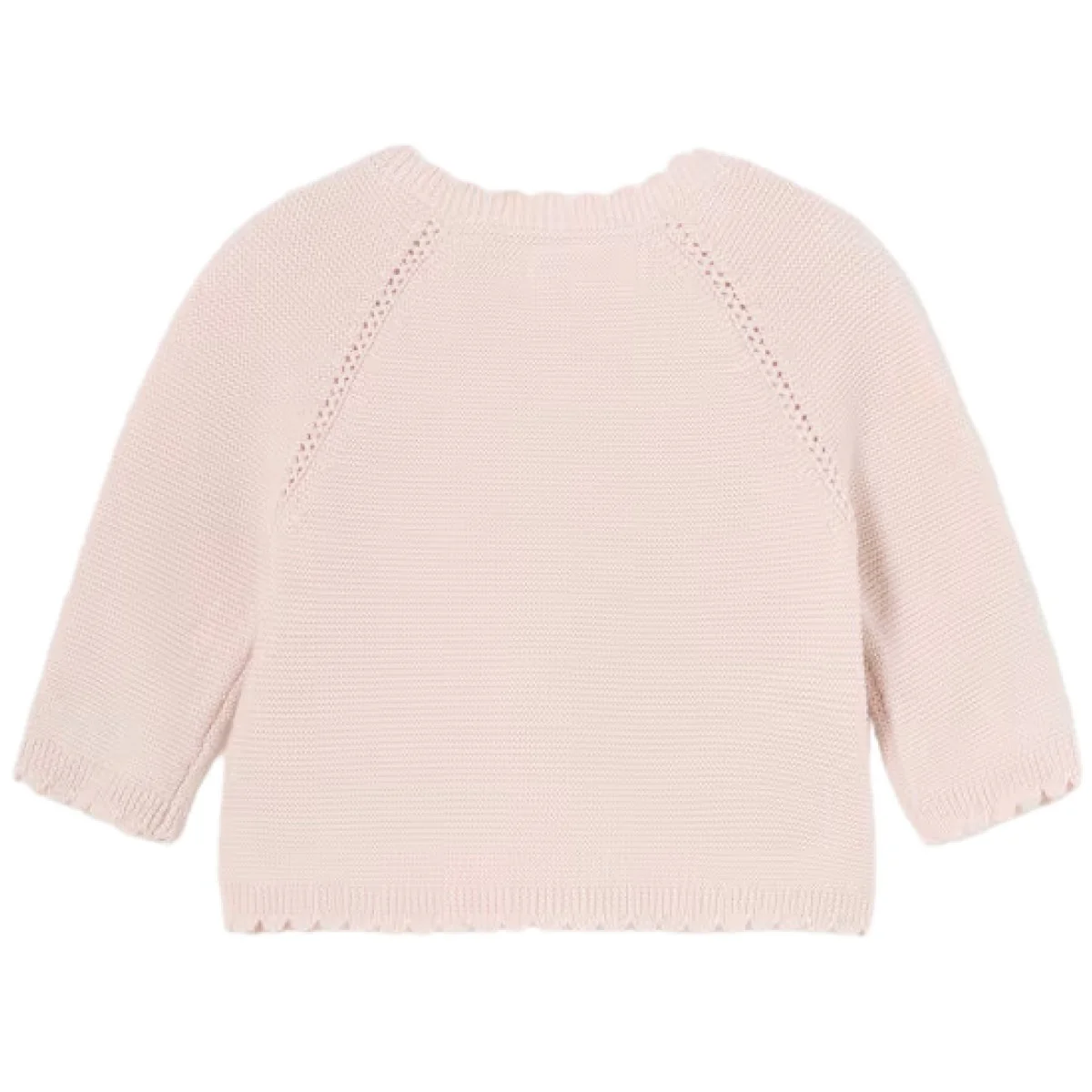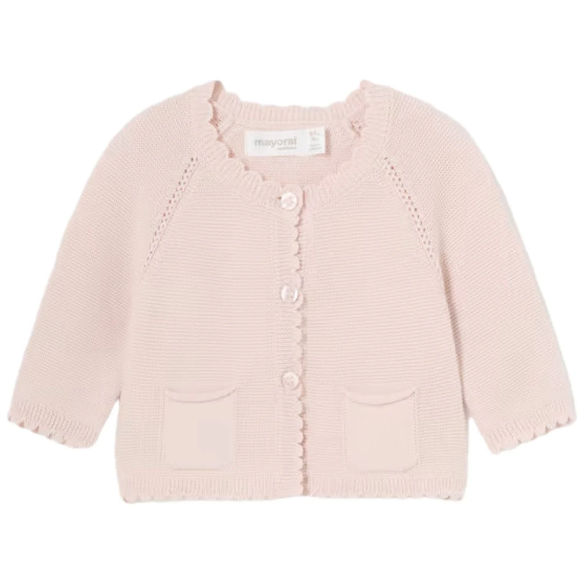 Cardigan MAYORAL in filo con ricami, trafori e tasche applicate, chiusura con bottoncini.
