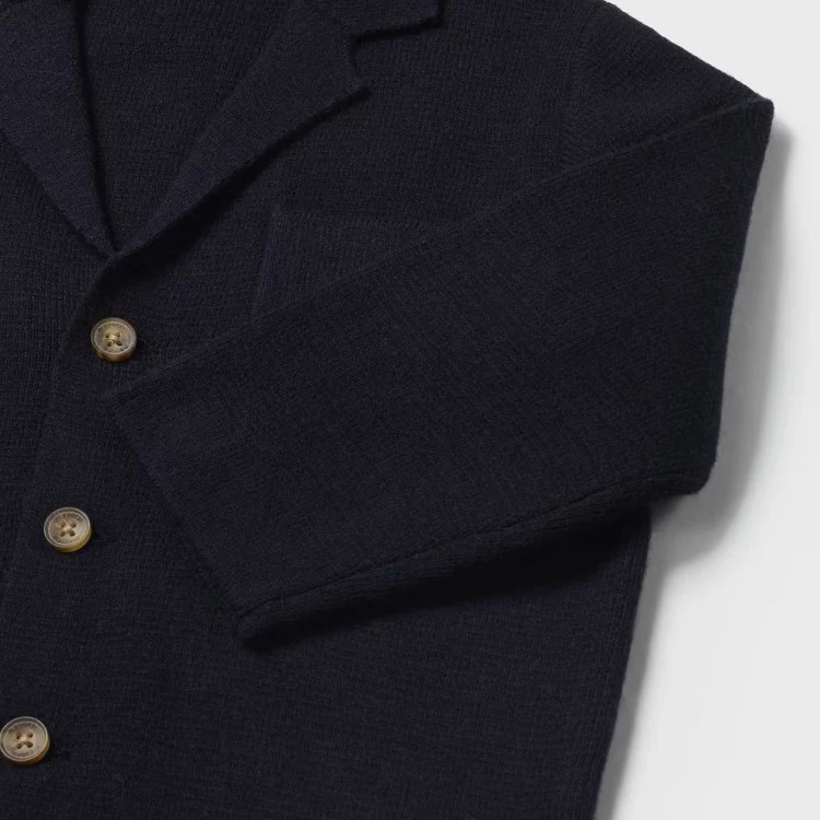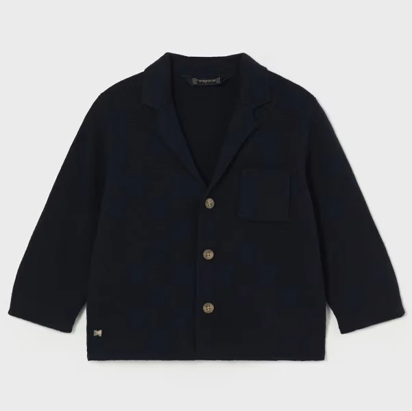 Cardigan MAYORAL modello giacca in misto lana con chiusura bottoncini logati, taschino laterale e logo applicato a rilievo.