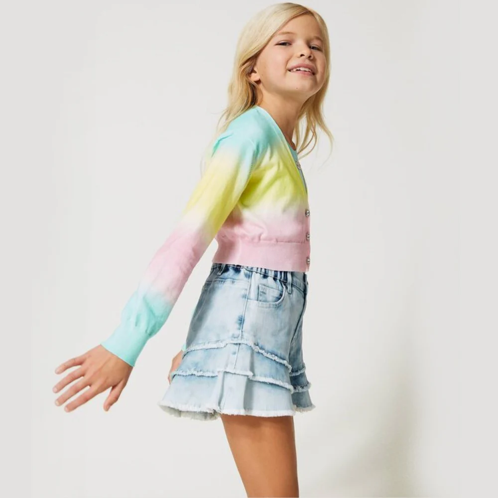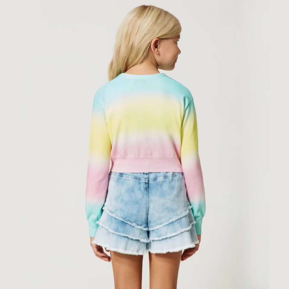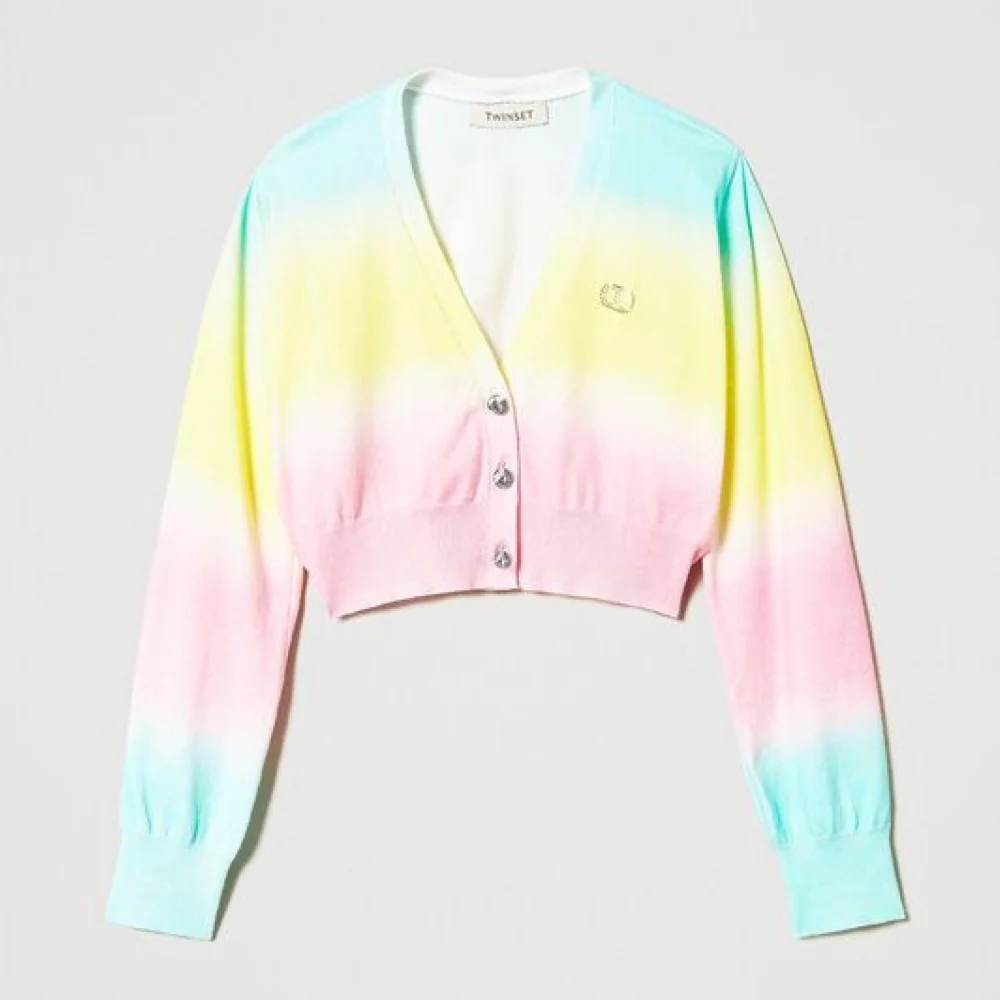 Cardigan TWINSET in cotone con stampa sfumata multicolor e logo in strass chiusura con bottoni gioiello.