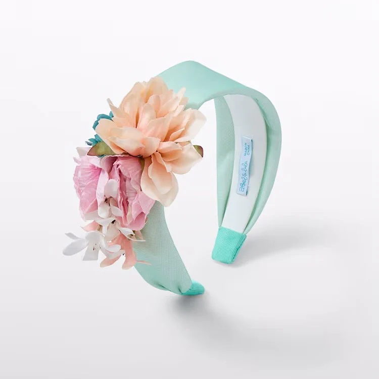 Cerchietto ABEL & LULA in cotone rivestito in tulle , con fiori applicati.