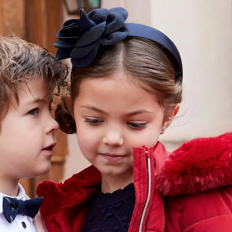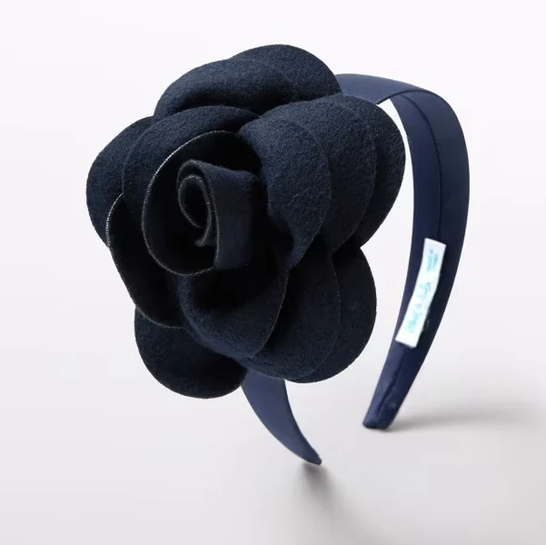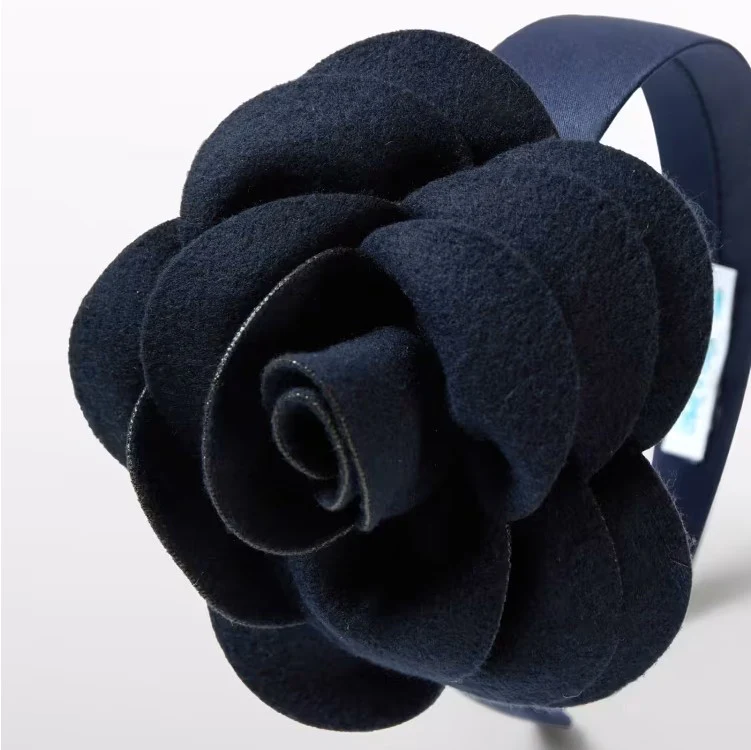 Cerchietto ABEL&LULA rivestito in tessuto con rosa in feltro applicata.