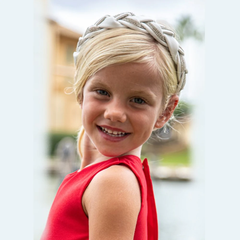 Cerchietto MAYORAL in tessuto effetto intrecciato con strass applicati.codice: 10486 10 Blanco