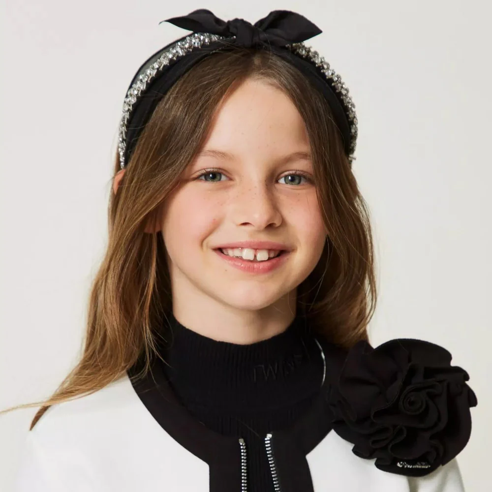 Cerchietto TWINSET in tulle con fiocco e strass applicati.codice: 232GJ438E Nero