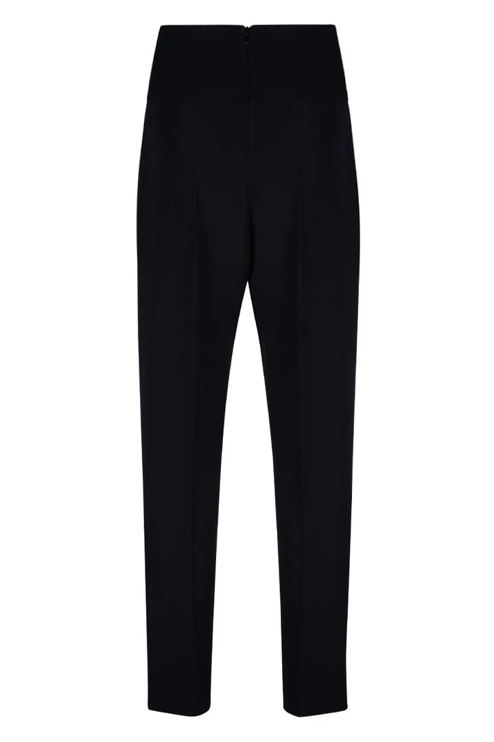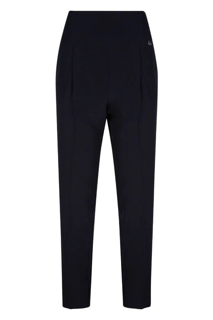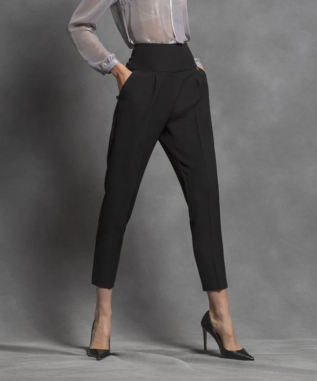 Pantaloni in poliviscosa elaticizzata. Vita alta con fascione e pences, chiusura con zip laterale. Gamba morbida e fondo sretto. Completa il look con una delle nostre camicie.