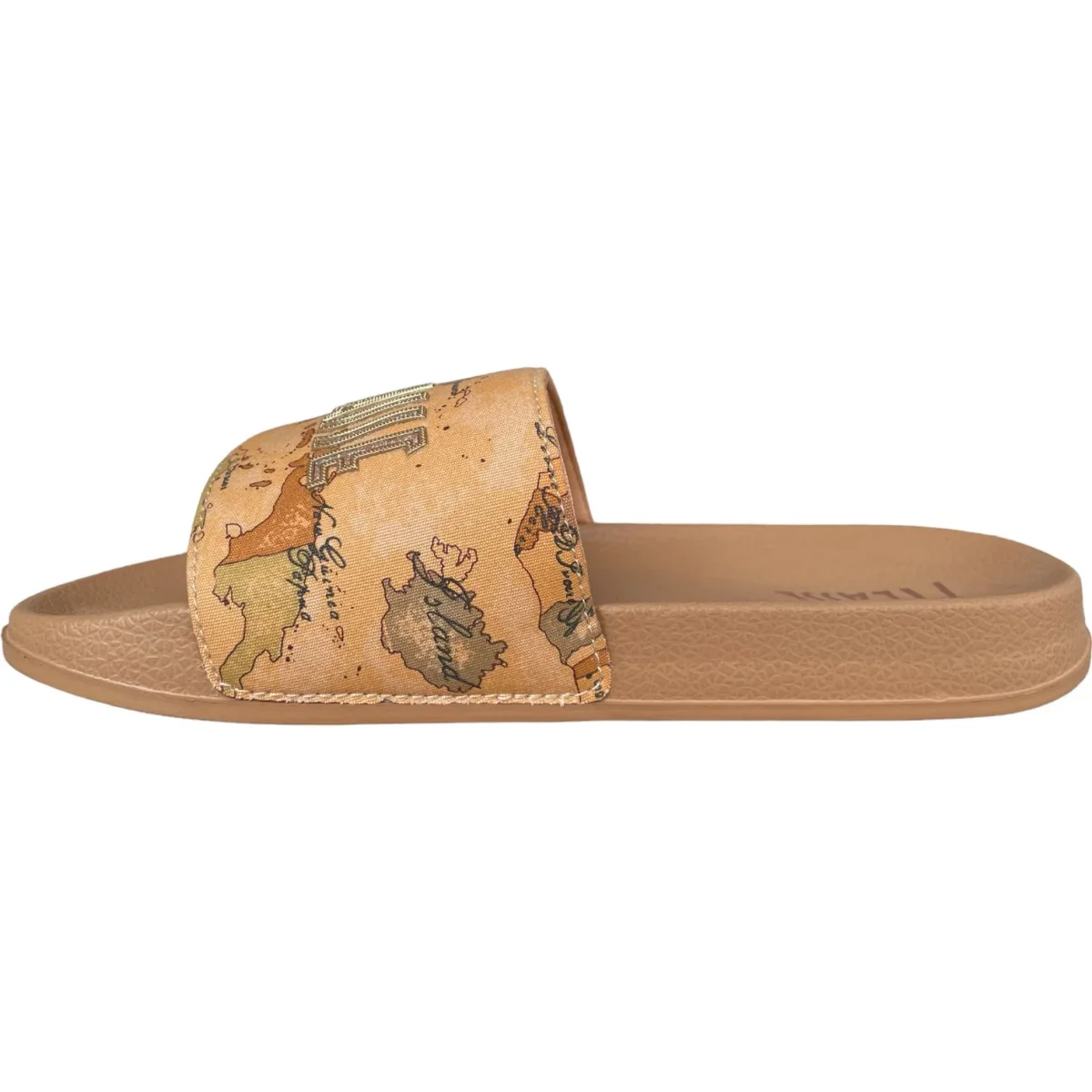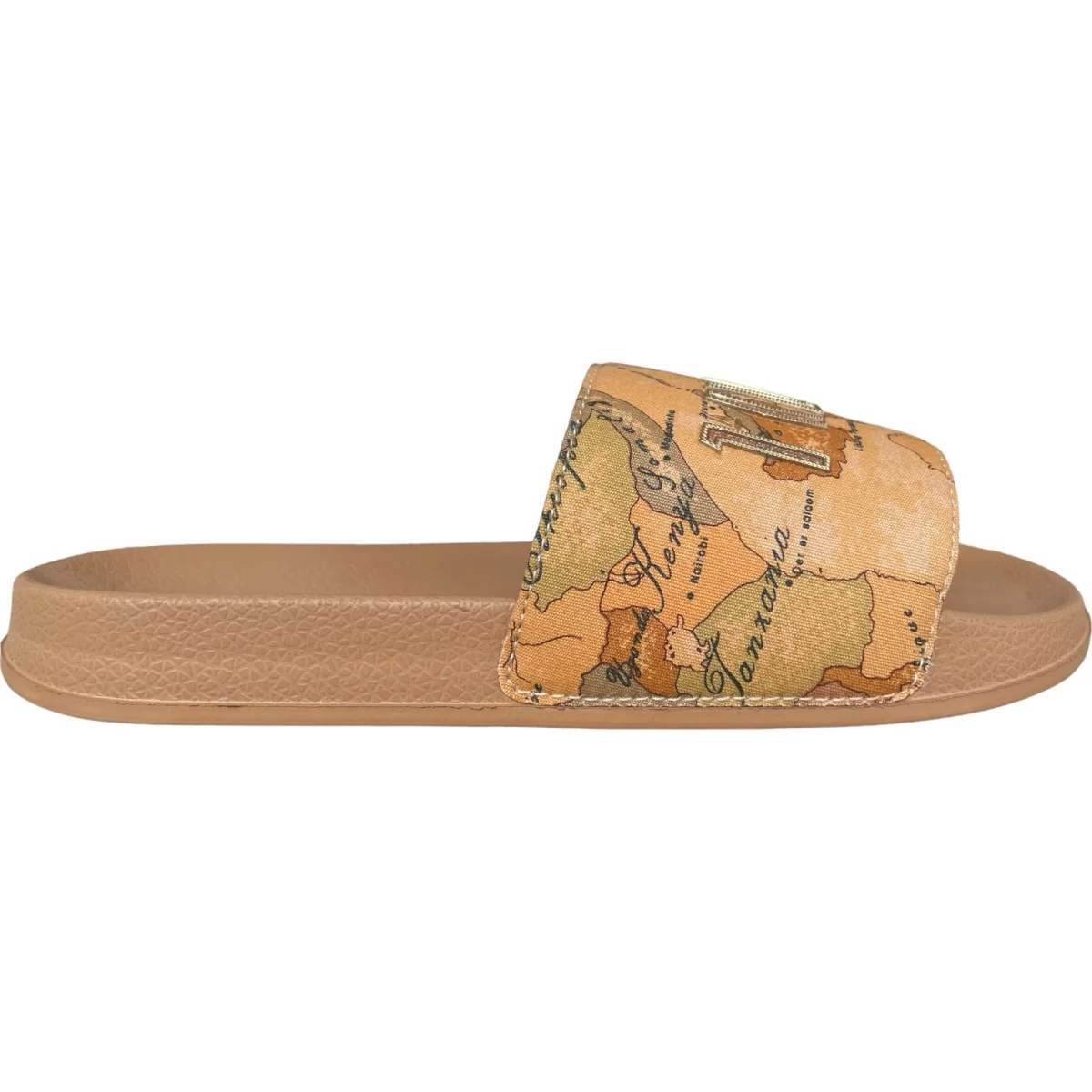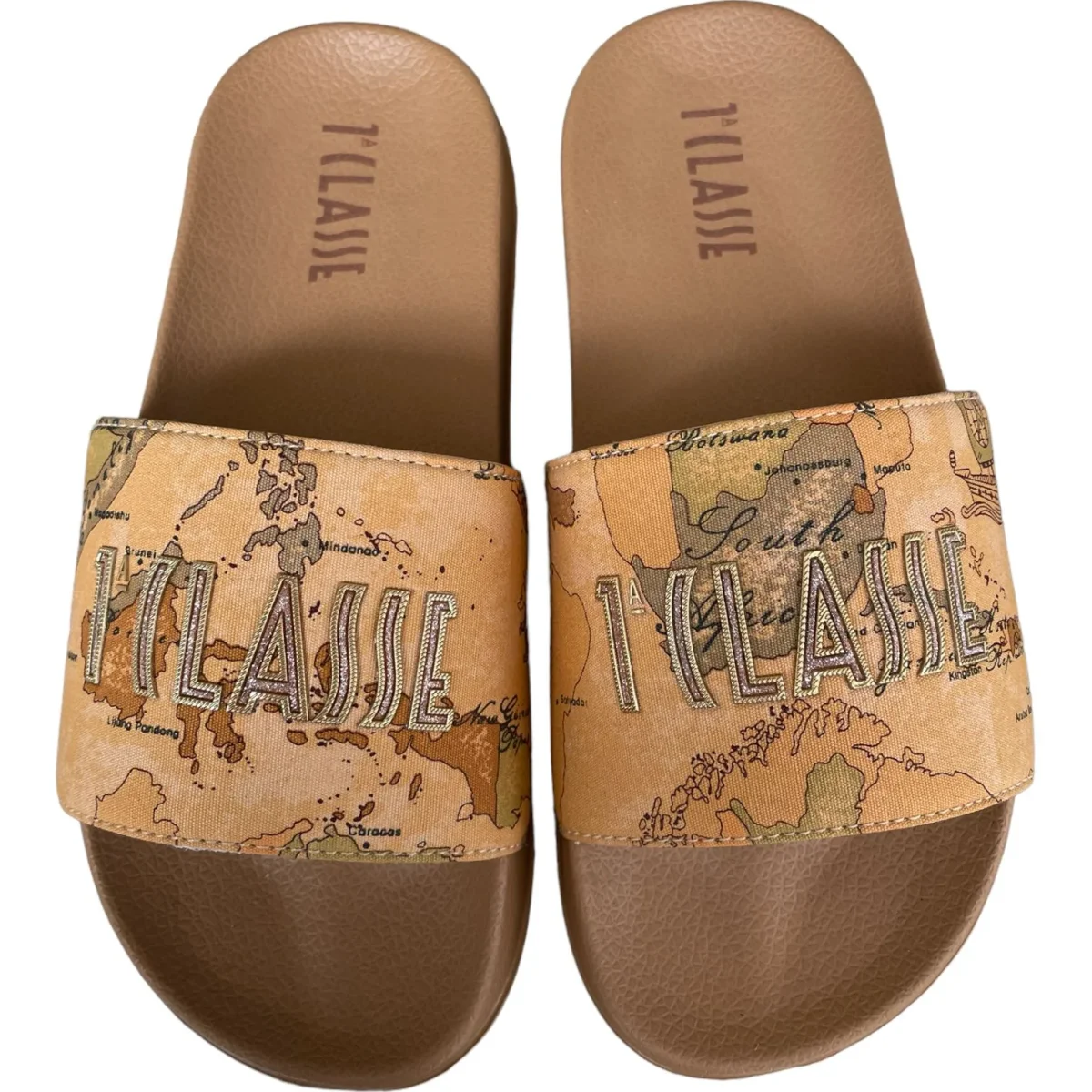 Ciabatta ALVIERO MARTINI 1 CLASSE con fascia in tessuto a fantasia e logo glitterato. fondo in gomma antiscivolo.