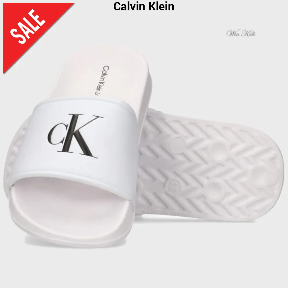 Ciabatta bianca CALVIN KLEIN con logo a contrasto. fondo in gomma antiscivolo.