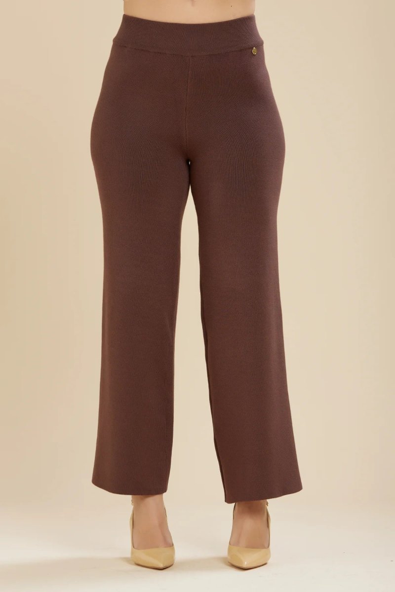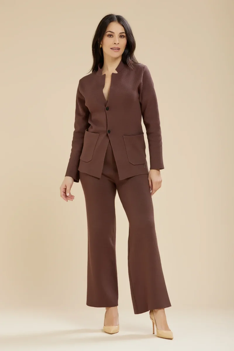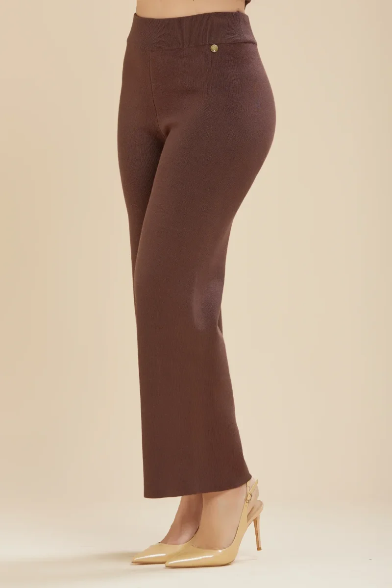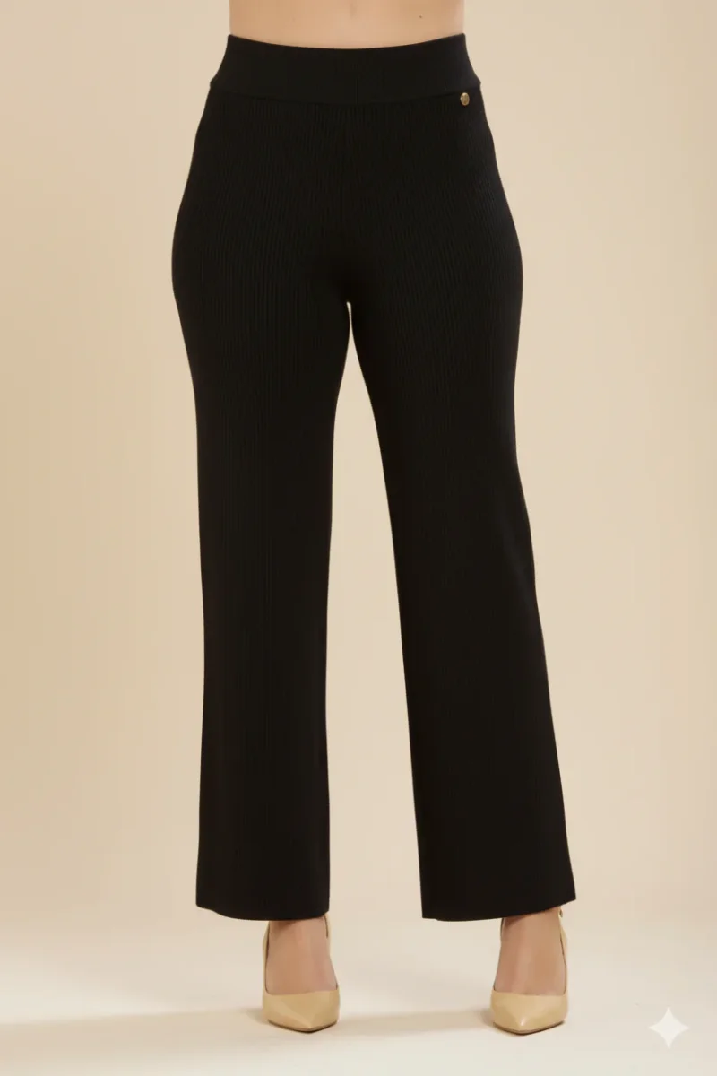 Pantalone in tessuto misto viscosa maglina elasticizzata. Vita alta con elastico. Gamba dritta e fondo che tende al allargarsi. Vestibilità dritta. Crea il completo con la giacca in maglina. Taglia in foto I. Composizione tessuto 51% viscosa 28% poliestere 21% nylon.