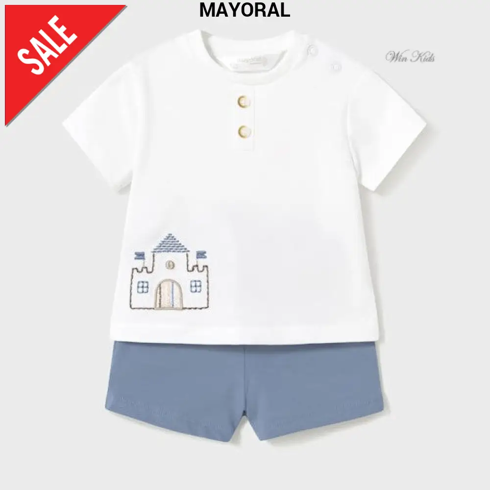 Completi MAYORAL in cotone composti da t-shirt con ricami e bermuda.