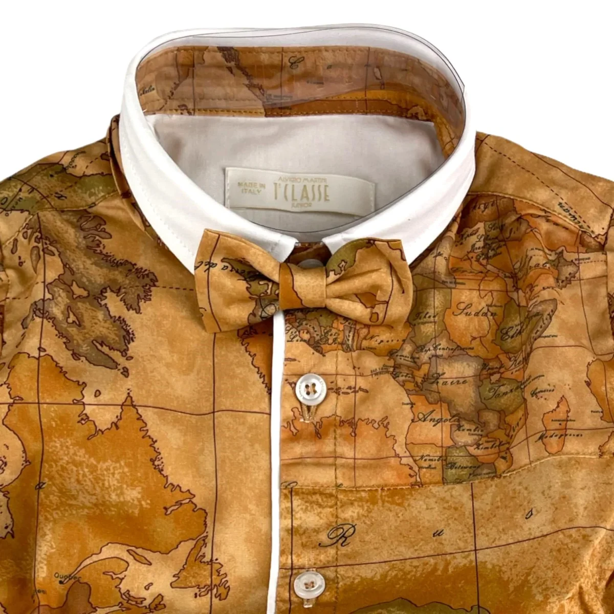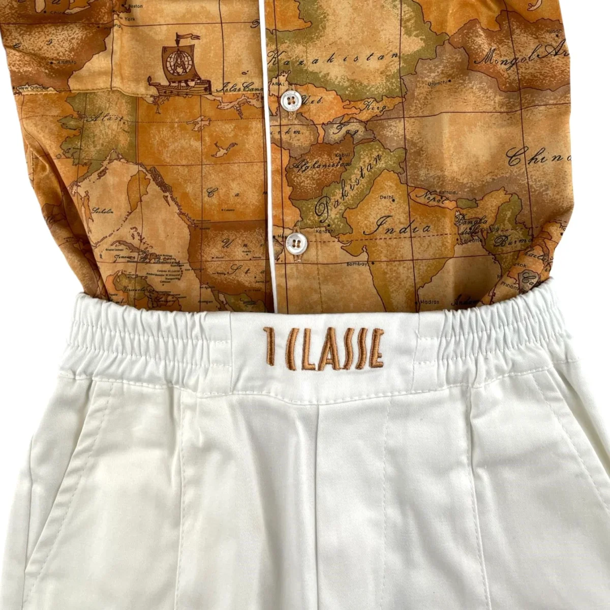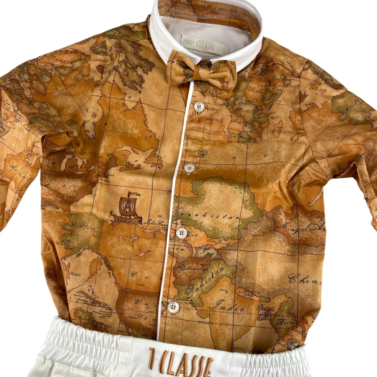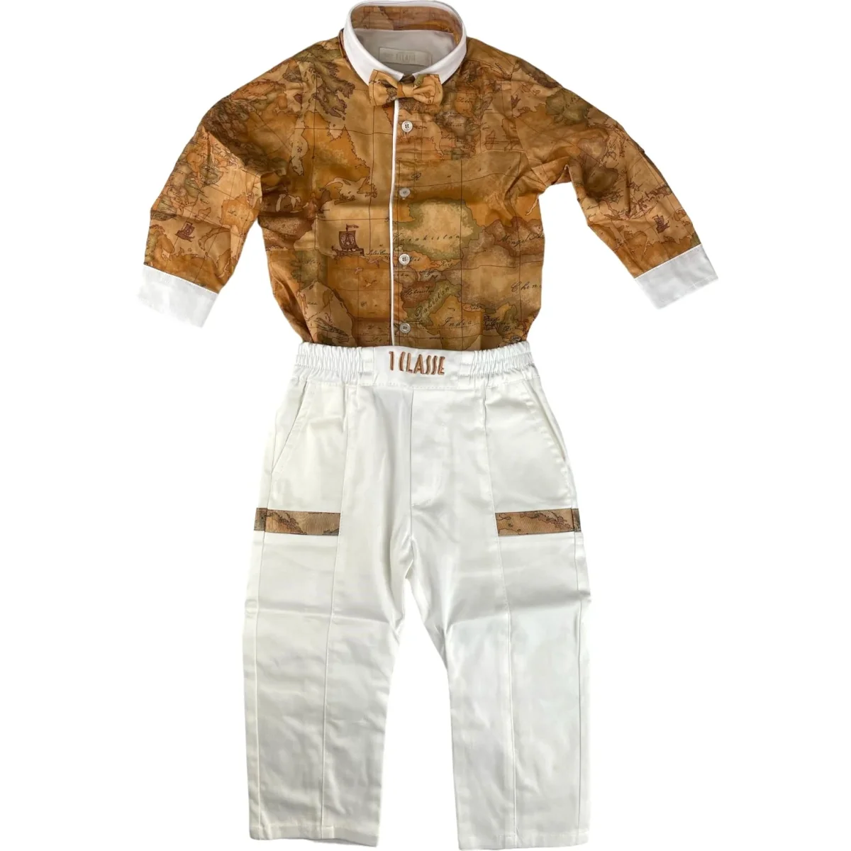 Completo ALVIERO MARTINI 1 CLASSE camicia pantalone e papillon coordinati. camicia con possibilità di renderla mezza manica. pantalone con elastico in vita e logo ricamato. papillon regolabile