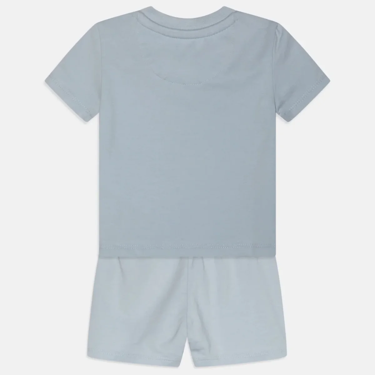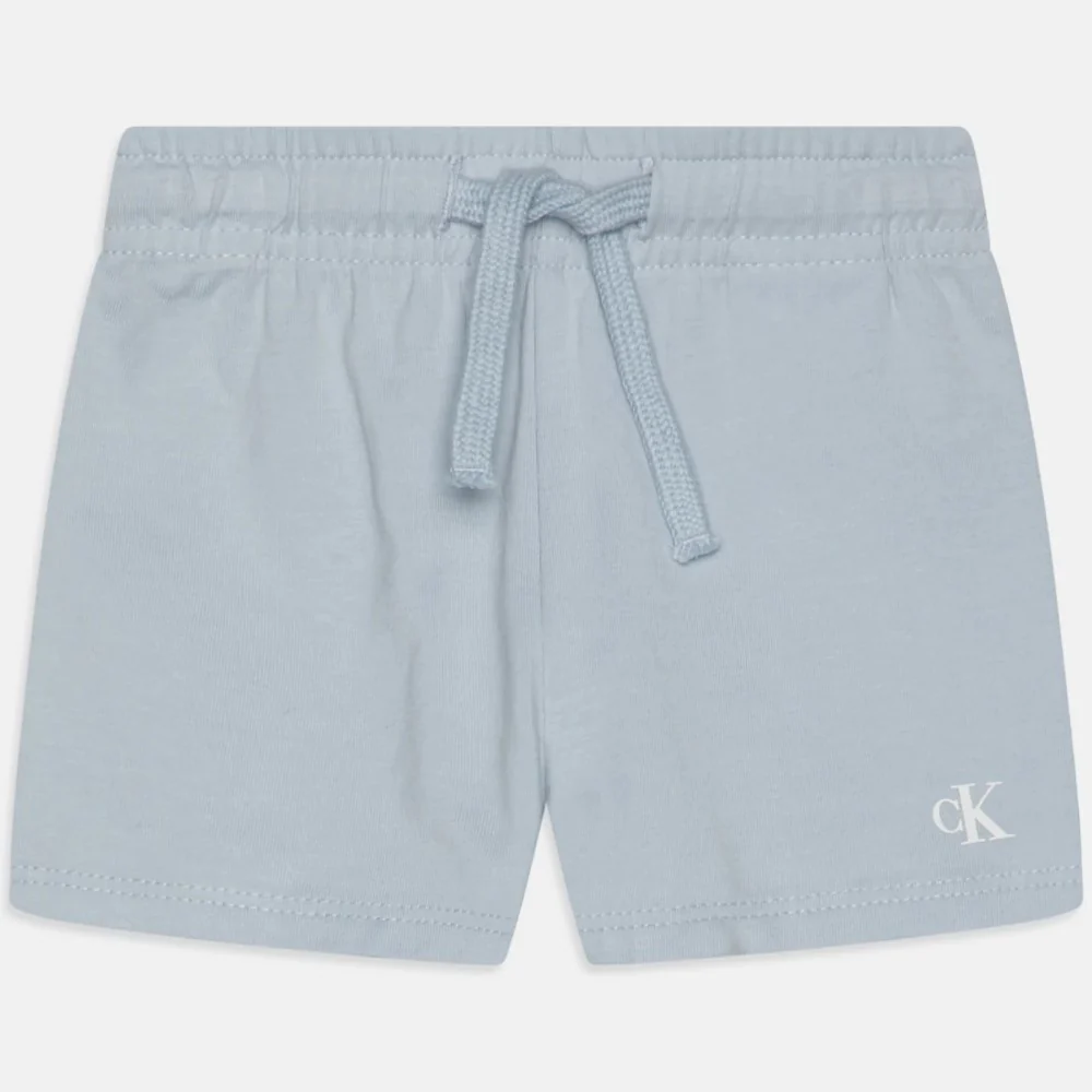 Completo CALVIN KLEIN in cotone composto da t-shirt con logo e bermuda con elastico in vita , laccetto regolabile e logo monogramma Calvin Klein sulla gamba.