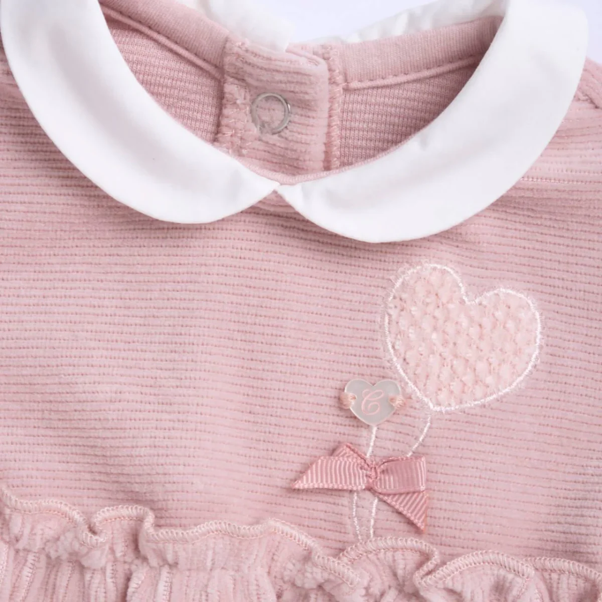 Completo CHICCO in ciniglia a costine composto da casacca e ghettina. Cuoricino ricamato.