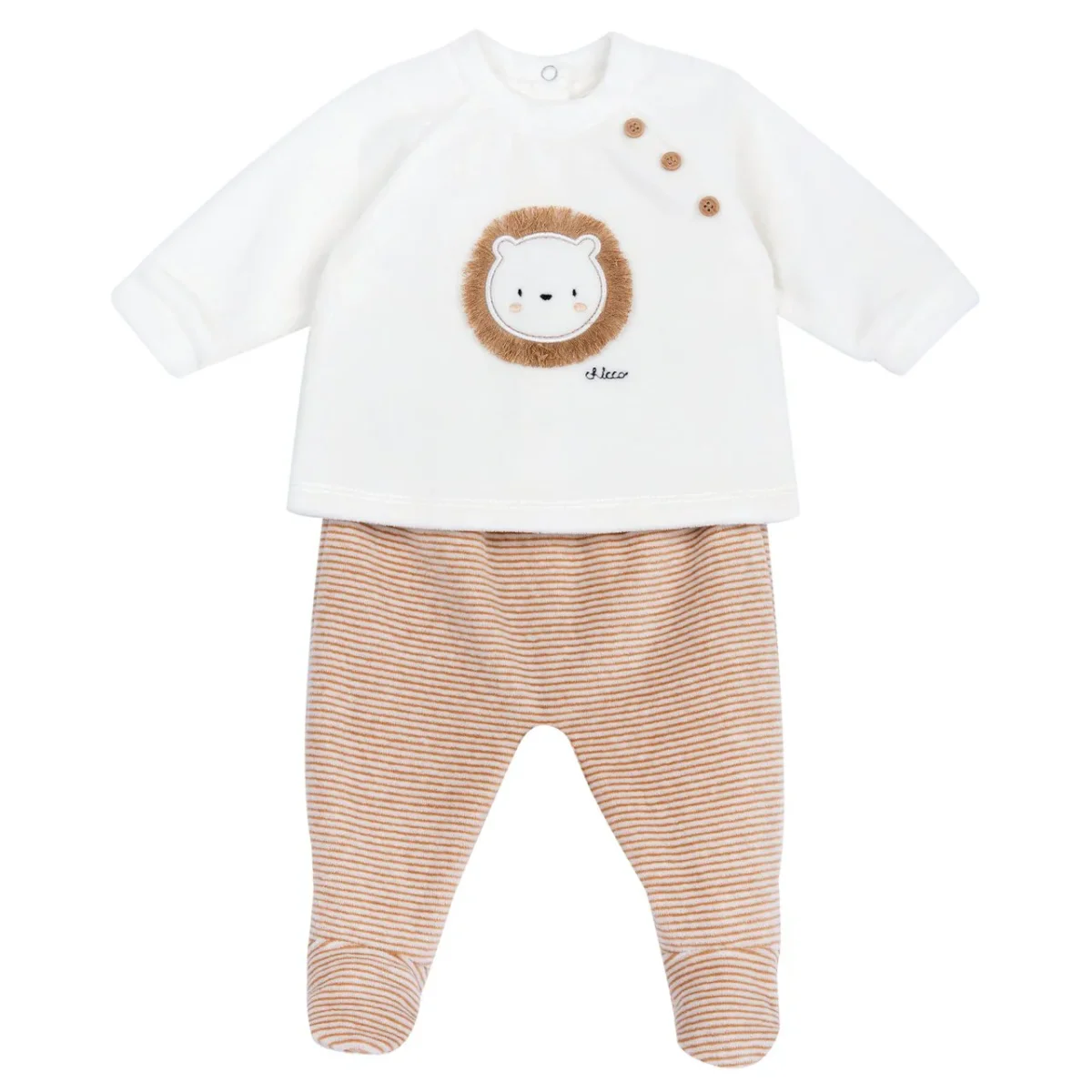 Completo CHICCO in ciniglia composto da casacca e ghettina , tema leoncino.