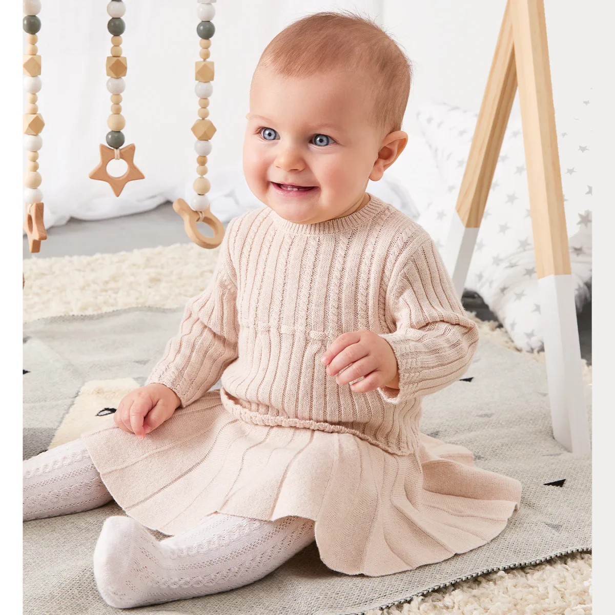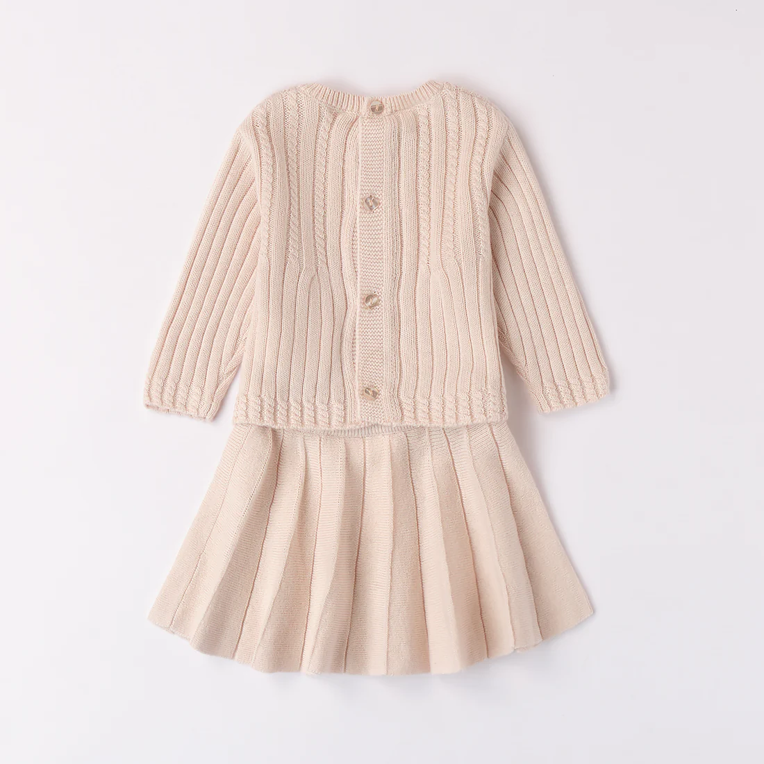 Completo i DO composto da maglione e gonna con lavorazione a treccia.