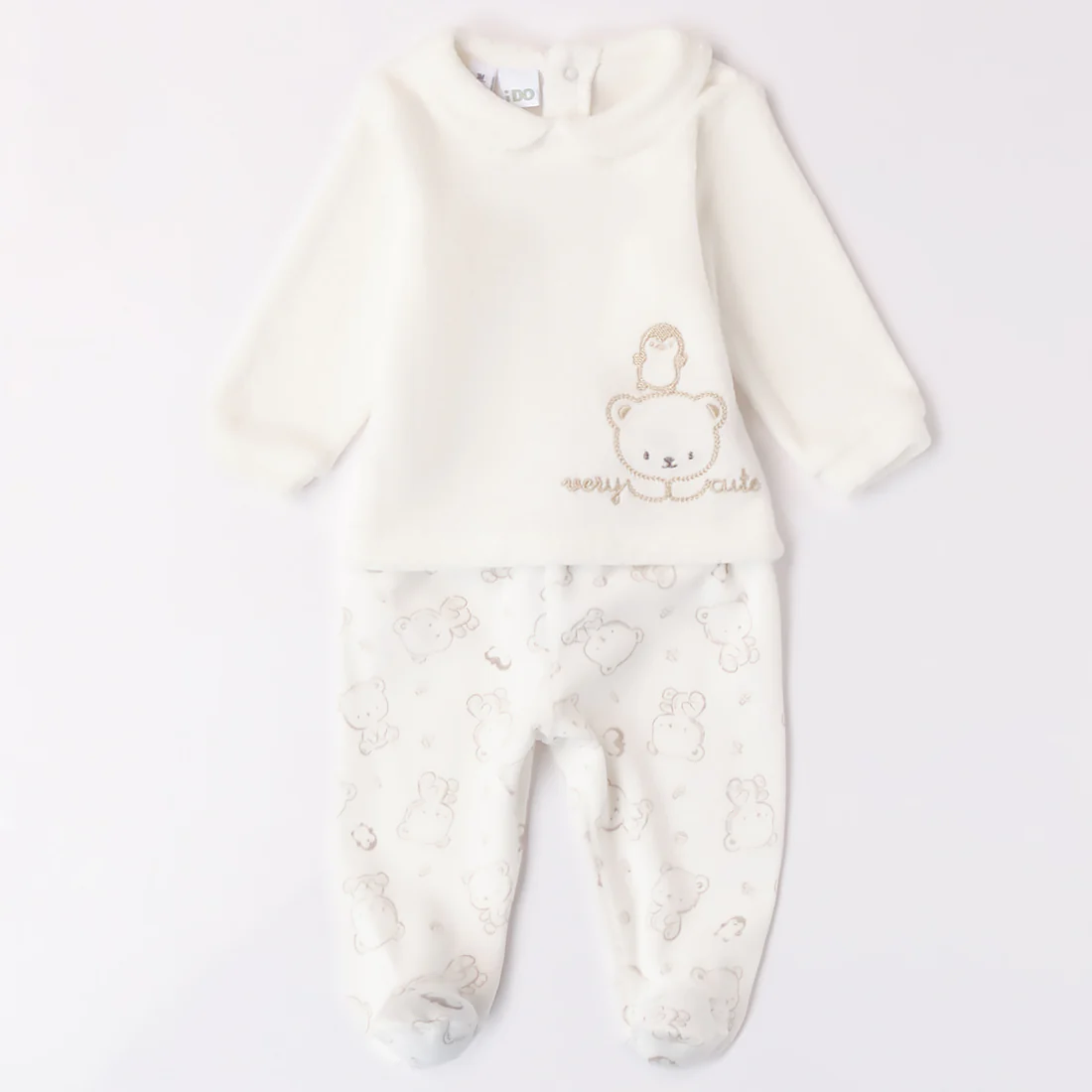 Completo i DO in ciniglia per neonata, apertura con clips.