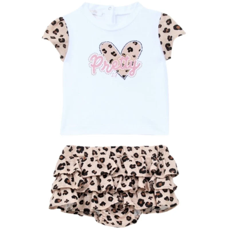 Completo LIU JO composto da:- T-shirt in cotone con stampa a contrasto e borchiette applicate. manica a fantasia in tessuto a contrasto.- shorts in tessuto a fantasia con elastico in vita