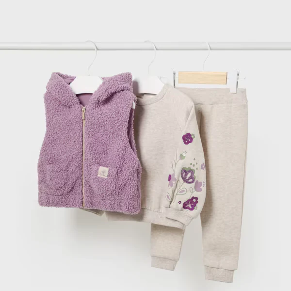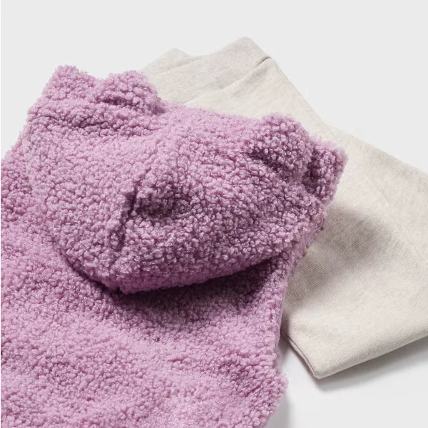 - gilet in tessuton teddy con cappuccio con orecchie applicate, chiusura zip con cursore logato, taschine laterali, fodera interna in cotone, elastico in vita;