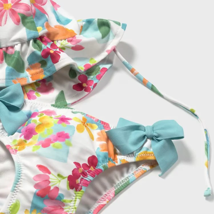 Completo MAYORAL composto da top costume e cappello in lycra con filtro protettivo UPF 40+ .