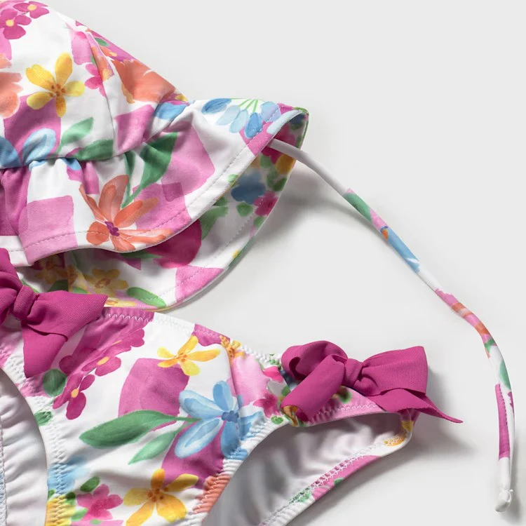 Completo MAYORAL composto da top costume e cappello in lycra con filtro protettivo UPF 40+ .