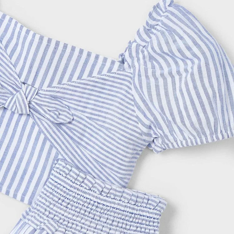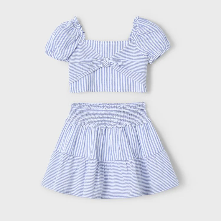 Completo MAYORAL in cotone composto da top con nodino e gonna con elastico in vita.