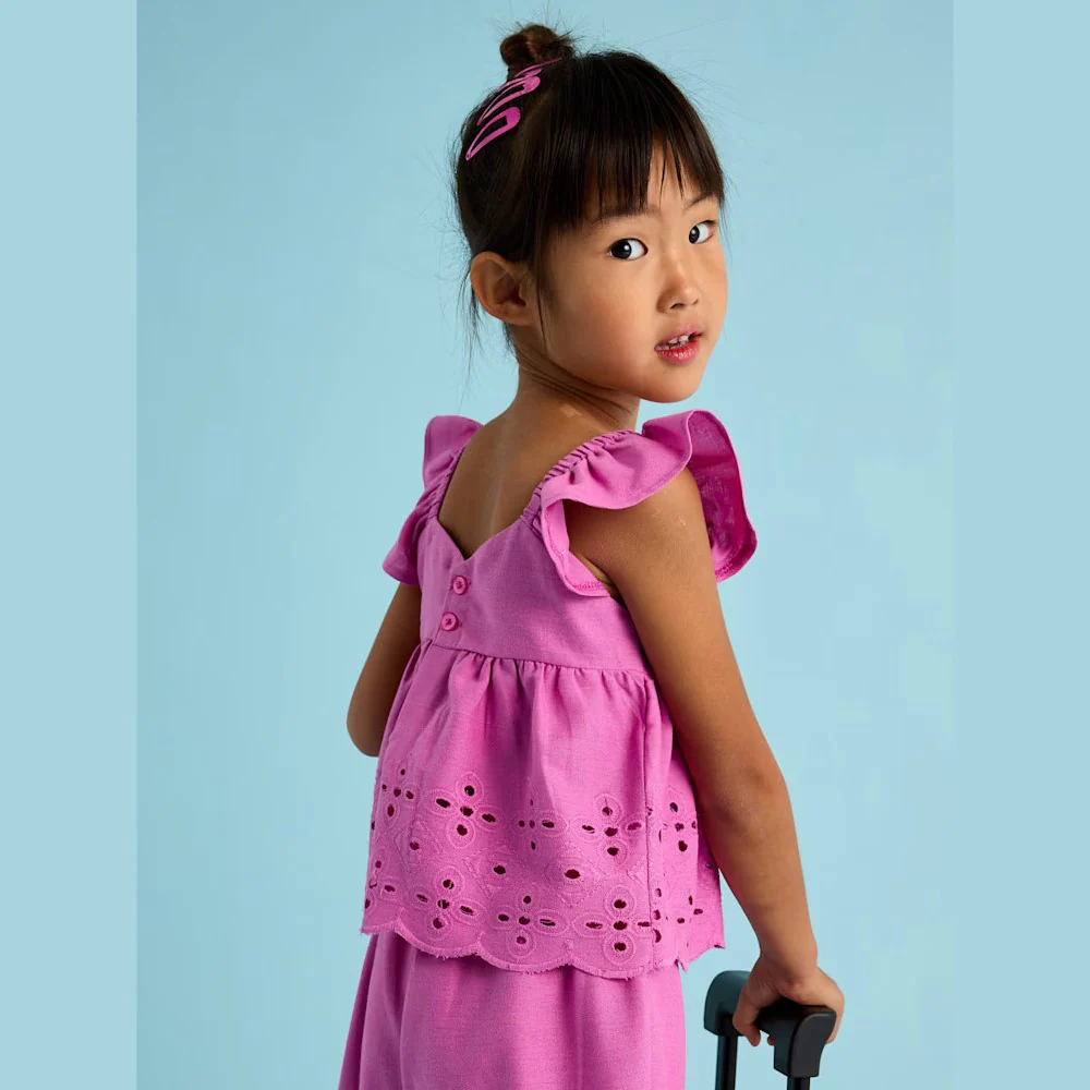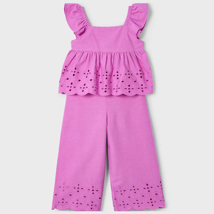 Completo MAYORAL in cotone pizzo san gallo top e pantalone palazzo.