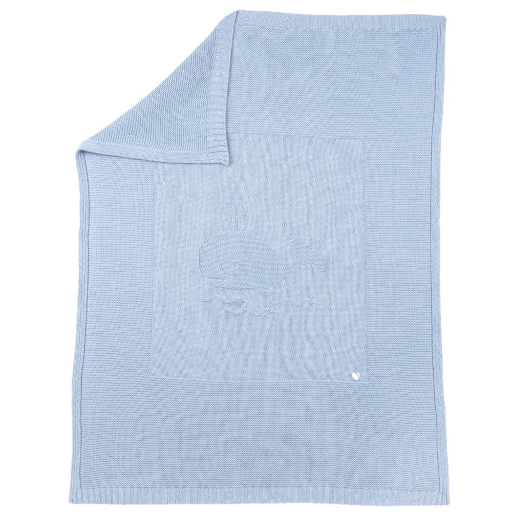 Coperta CHICCO in filo con ricamo balena lavorato al centro logo applicato a rilievo modello per carrozzina.Dimensioni: 86x68cm.