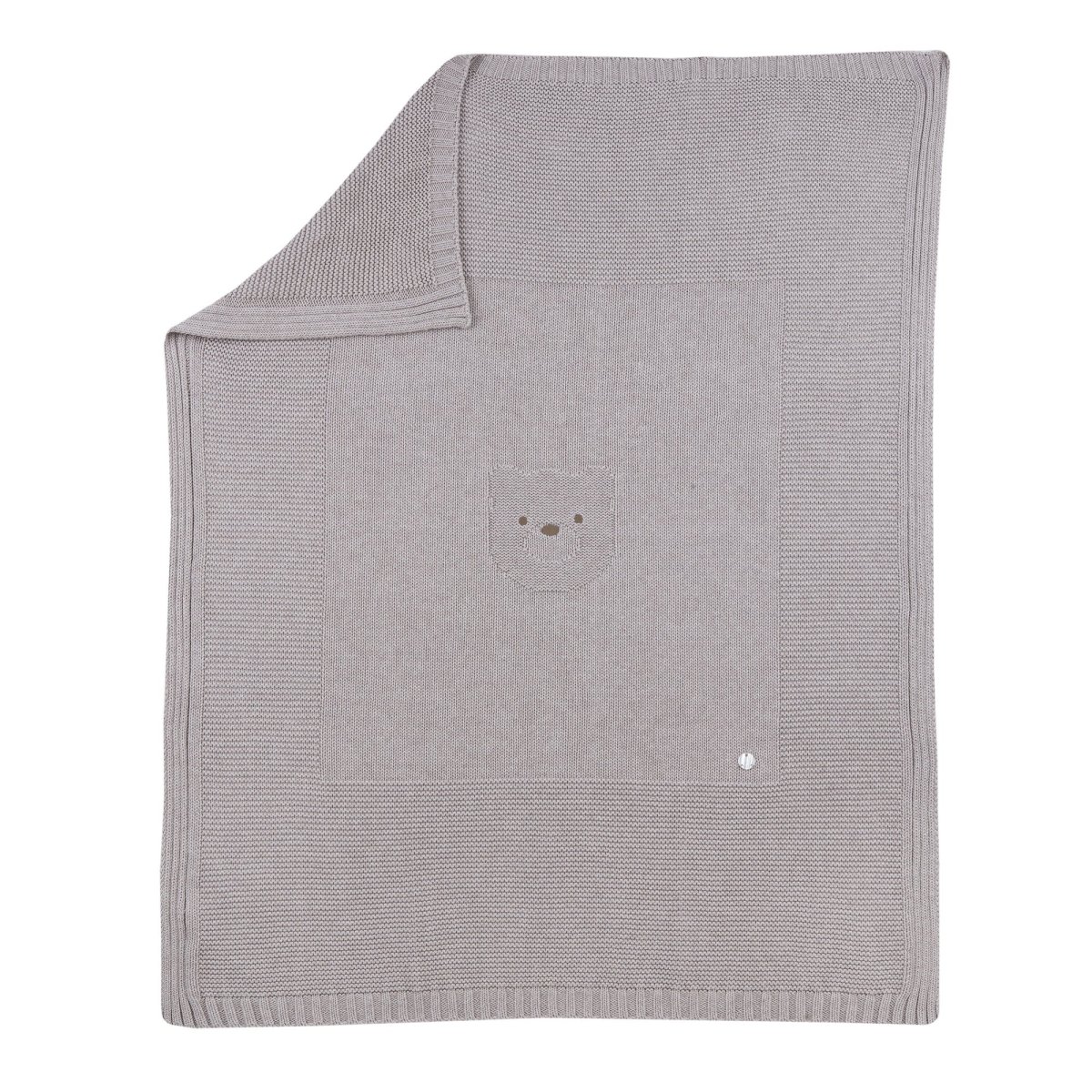Coperta CHICCO in caldo cotone lavorato con ricamo lavorato al centro e logo applicato a rilievo, modello per carrozzina.