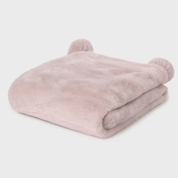 Coperta MAYORAL in ecopelliccia, con pom pon applicati agli angoli.