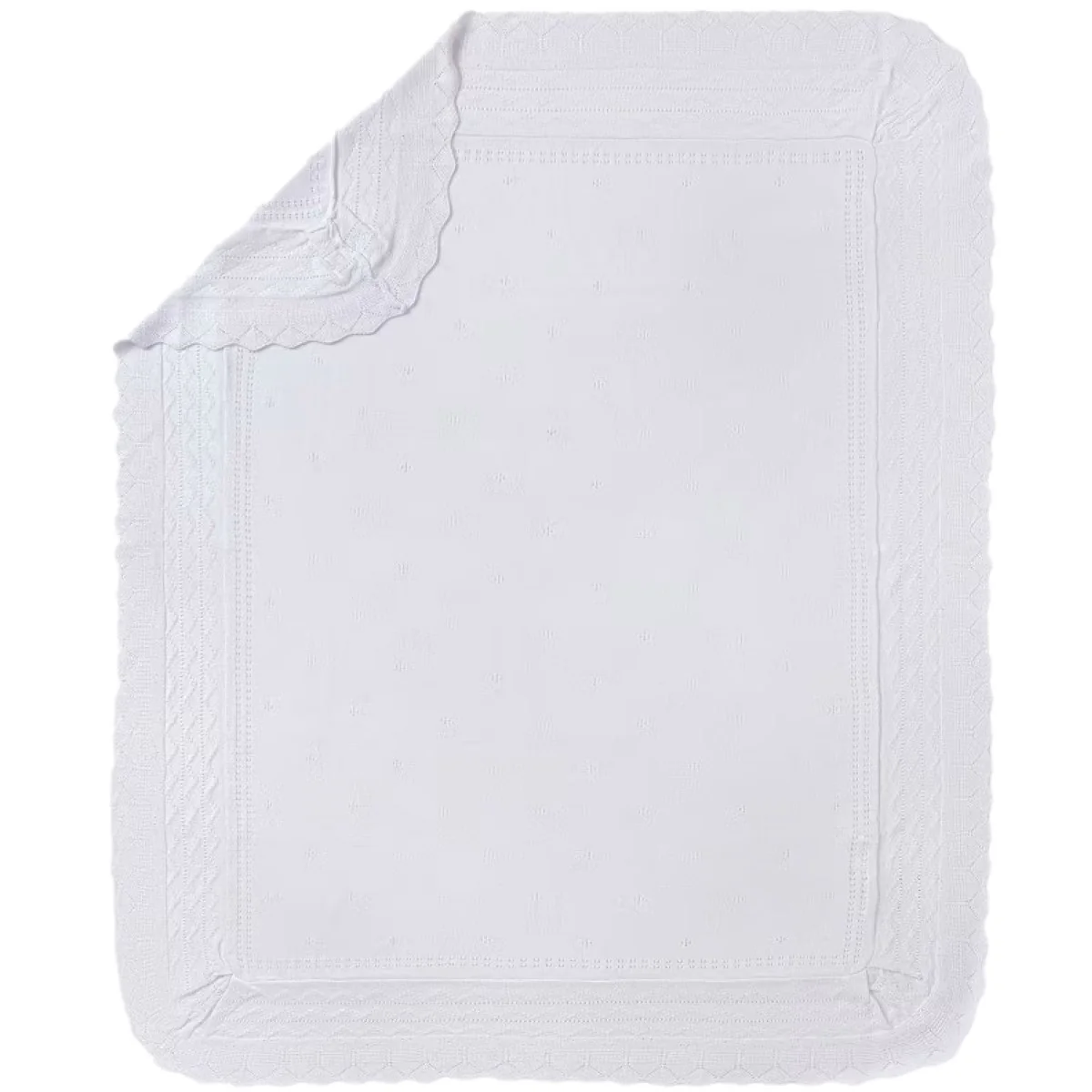 Coperta MAYORAL in filo con ricami, bordi lavorati e ricamati, modello da carrozzina.