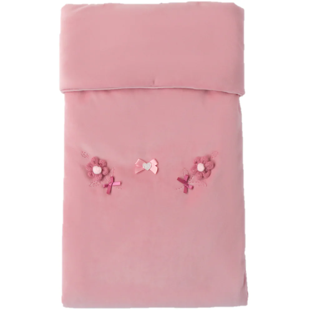 Coperta MINIBANDA in ciniglia con applicazioni a contrasto, modello per carrozzina. dotata di scatola.