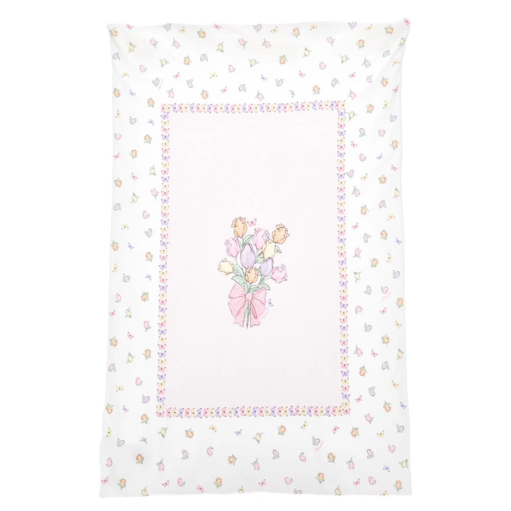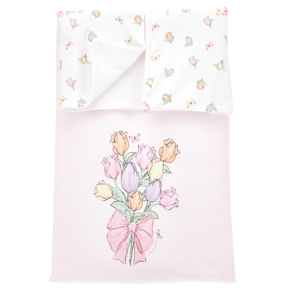 Coperta MONNALISA a fantasia con rifiniture a contrasto e logo. dotata di scatola regalo.dimensioni 90×70