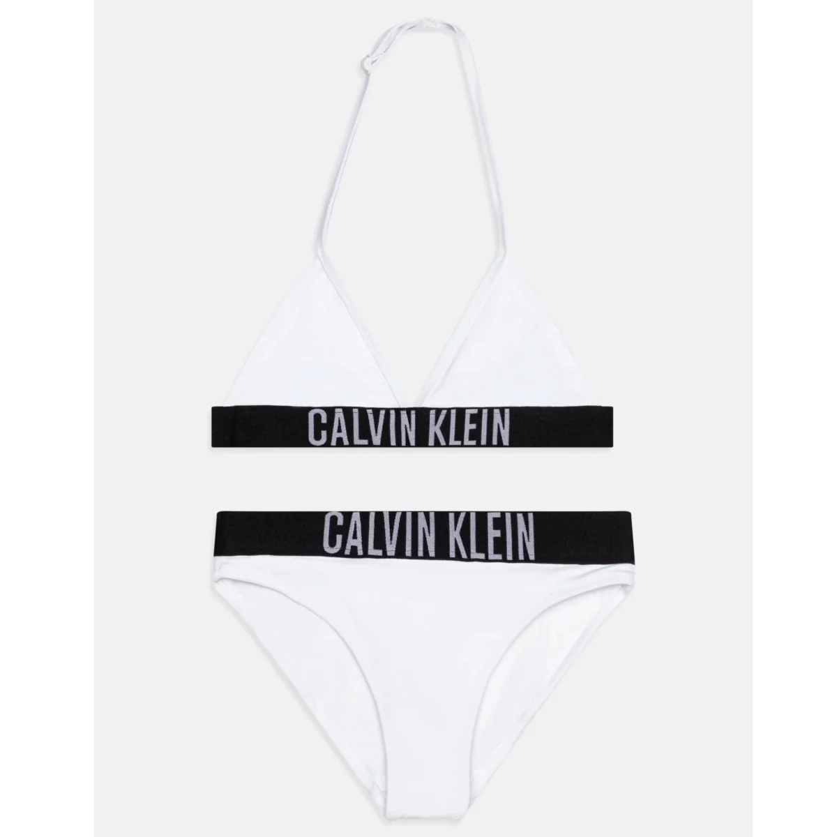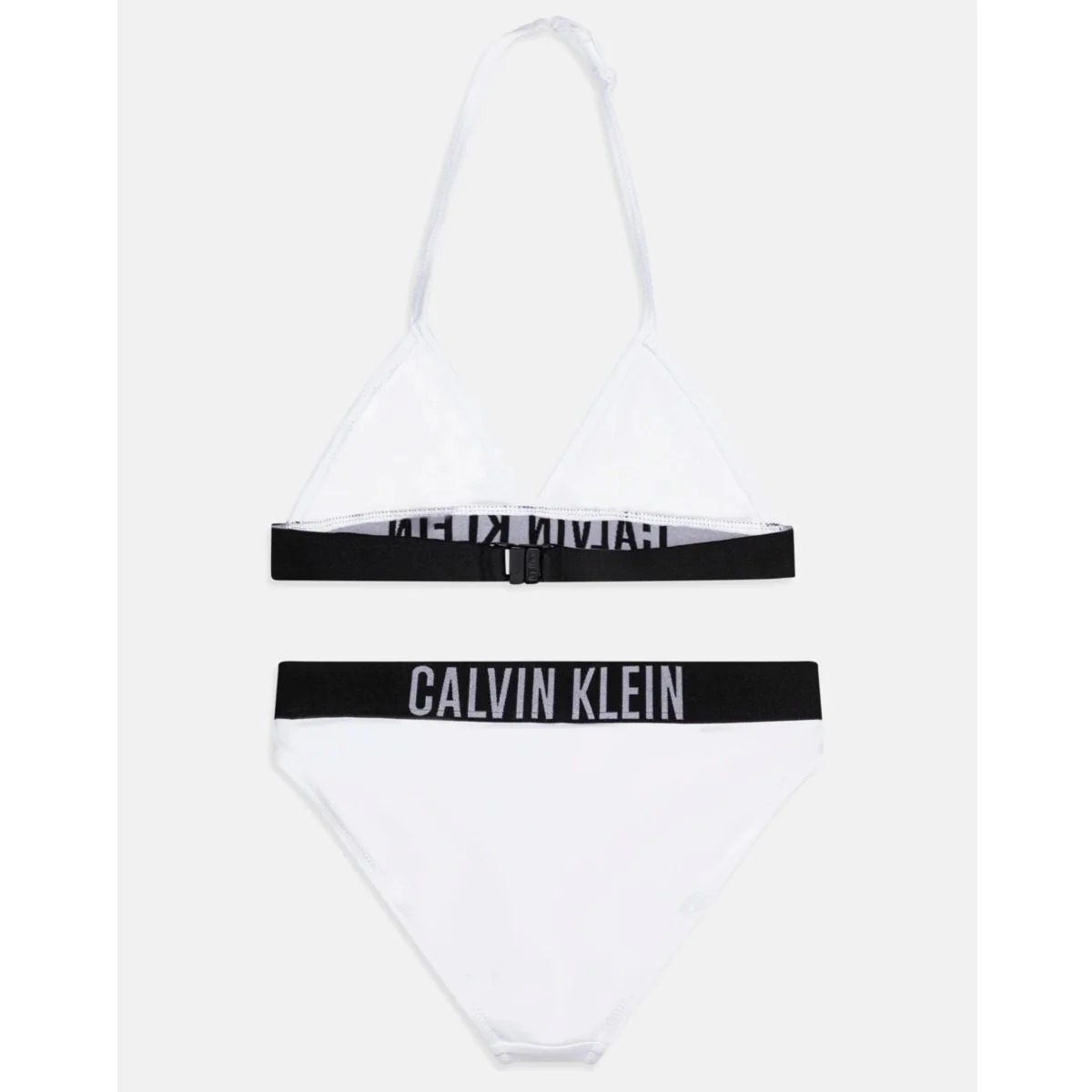 Costume CALVIN KLEIN modello due pezzi con elastici logati, parte superiore regolabile e con chiusura logata sul retro.