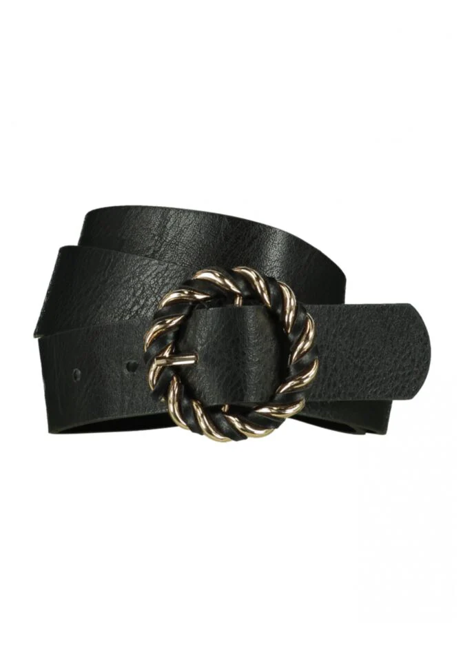 Cintura in tessuto misto pelle ed ecopelle. Fibbia in metallo intrecciato. Ideale per jeans e pantaloni. Lunghezza regolabile. Composizione tessuto 50% poliuretano 50% pelle.