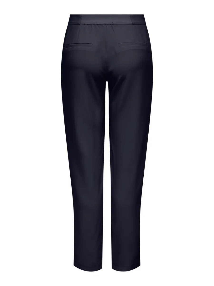 Pantalone basico in tessuto tecnico. Vita alta con cinturino fisso sul davanti ed elastico sulla schiena. Doppio passante sul davanti e pences, chiusura con zip e bottone e gancio interni. Tasche a filo laterali e doppio taschino posteriore. Gamba e fondo dritti. Composizione tessuto 100% poliestere. Crea il tailleur con la giacca abbinata .