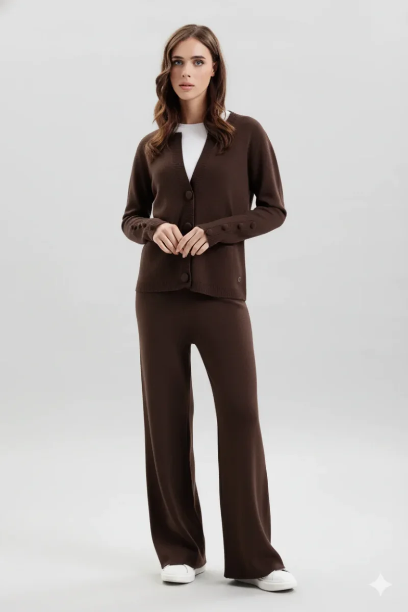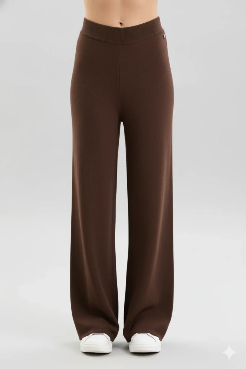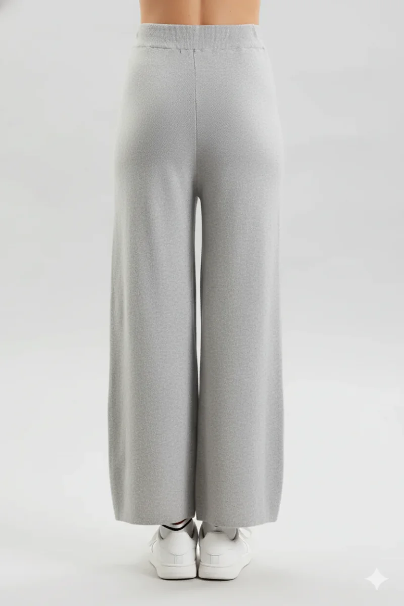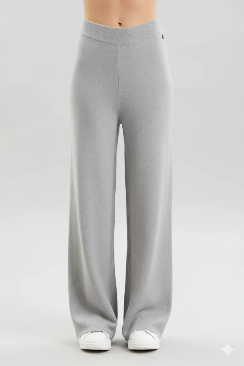 Pantalone in tessuto maglia misto viscosa. Vita alta con elastico, logo brand cucito sul lato. Gamba e fondo dritti. Vestibilità comoda. Crea il completo con il cardigan abbinato. Composizione tessuto 51% viscosa 28% poliestere 21% nylon.